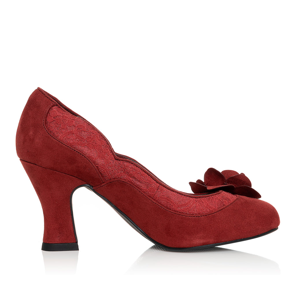 Chrissie Crimson Mid Heel Lace Court Shoe by Ruby Shoo