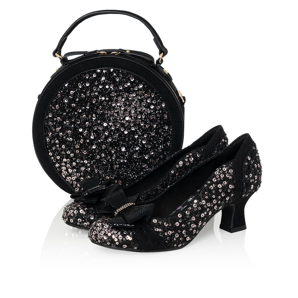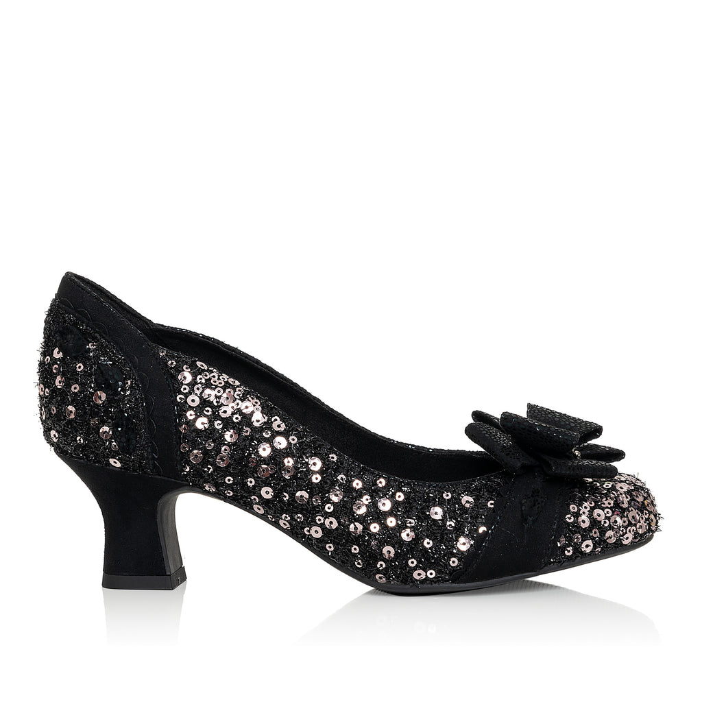 Rhea Black Sequin Mid Heel Court Shoes by Ruby Shoo