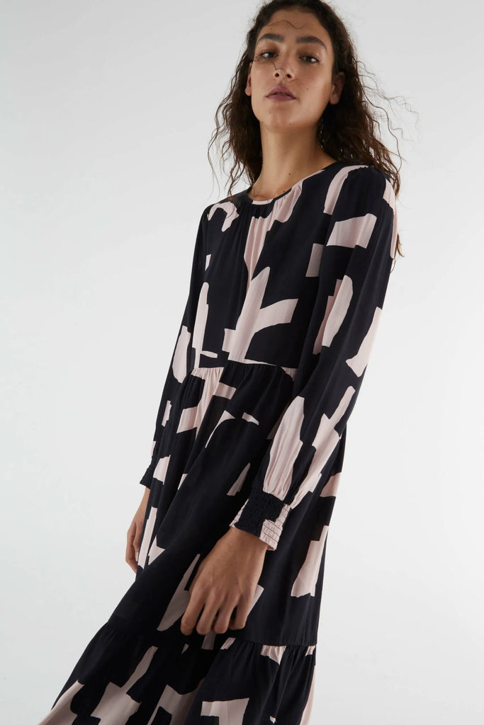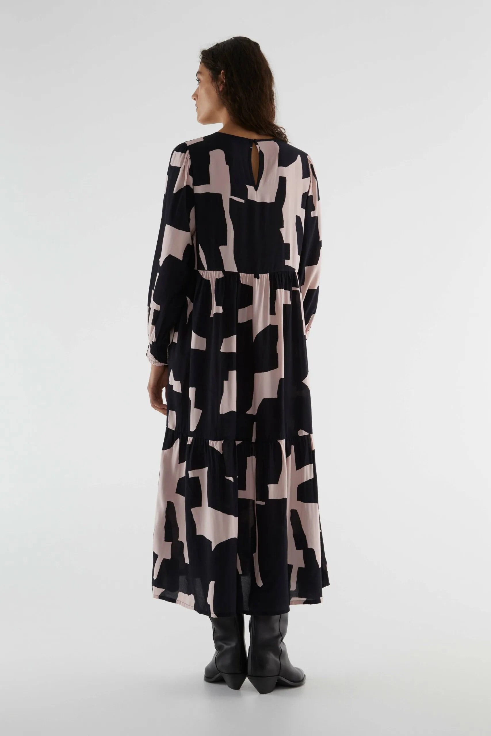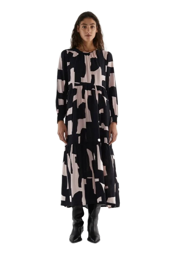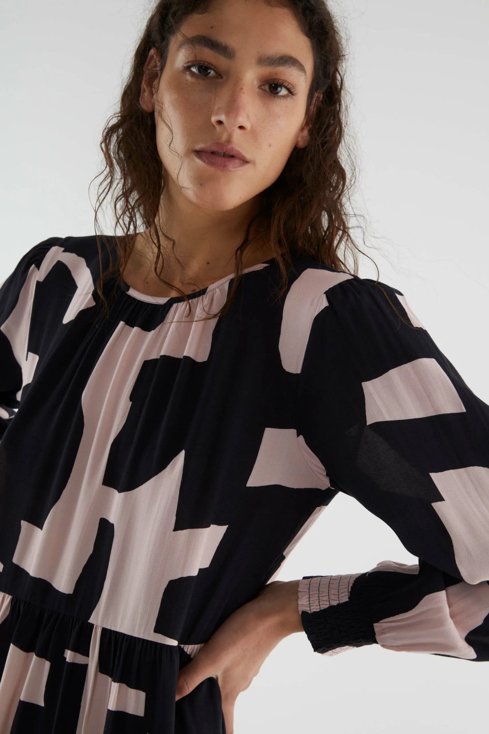 Compania Fantastica Black Abstract Print Midi Dress With Long Sleeves
