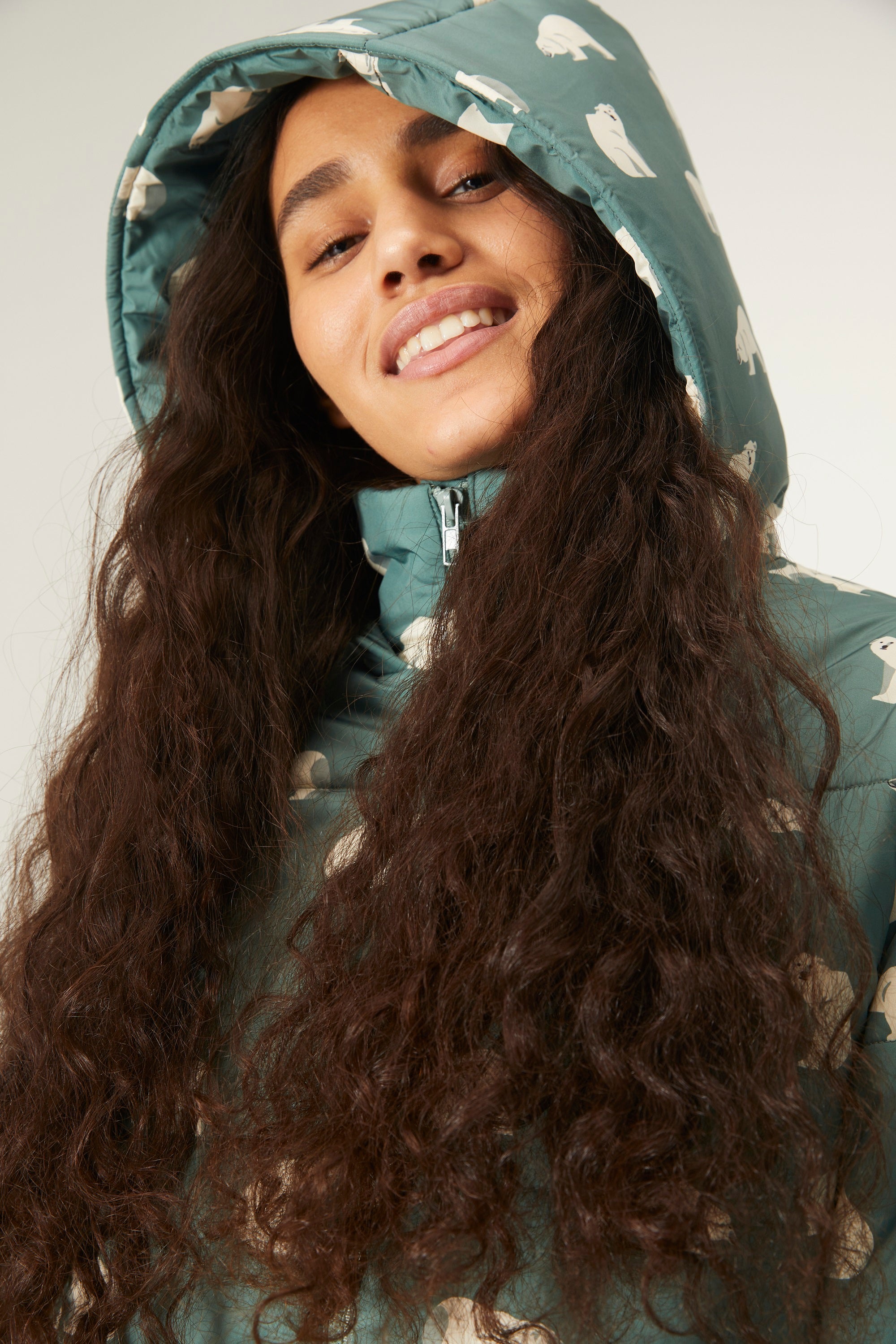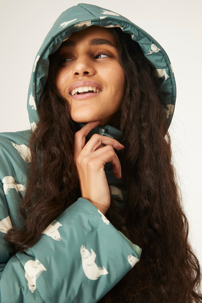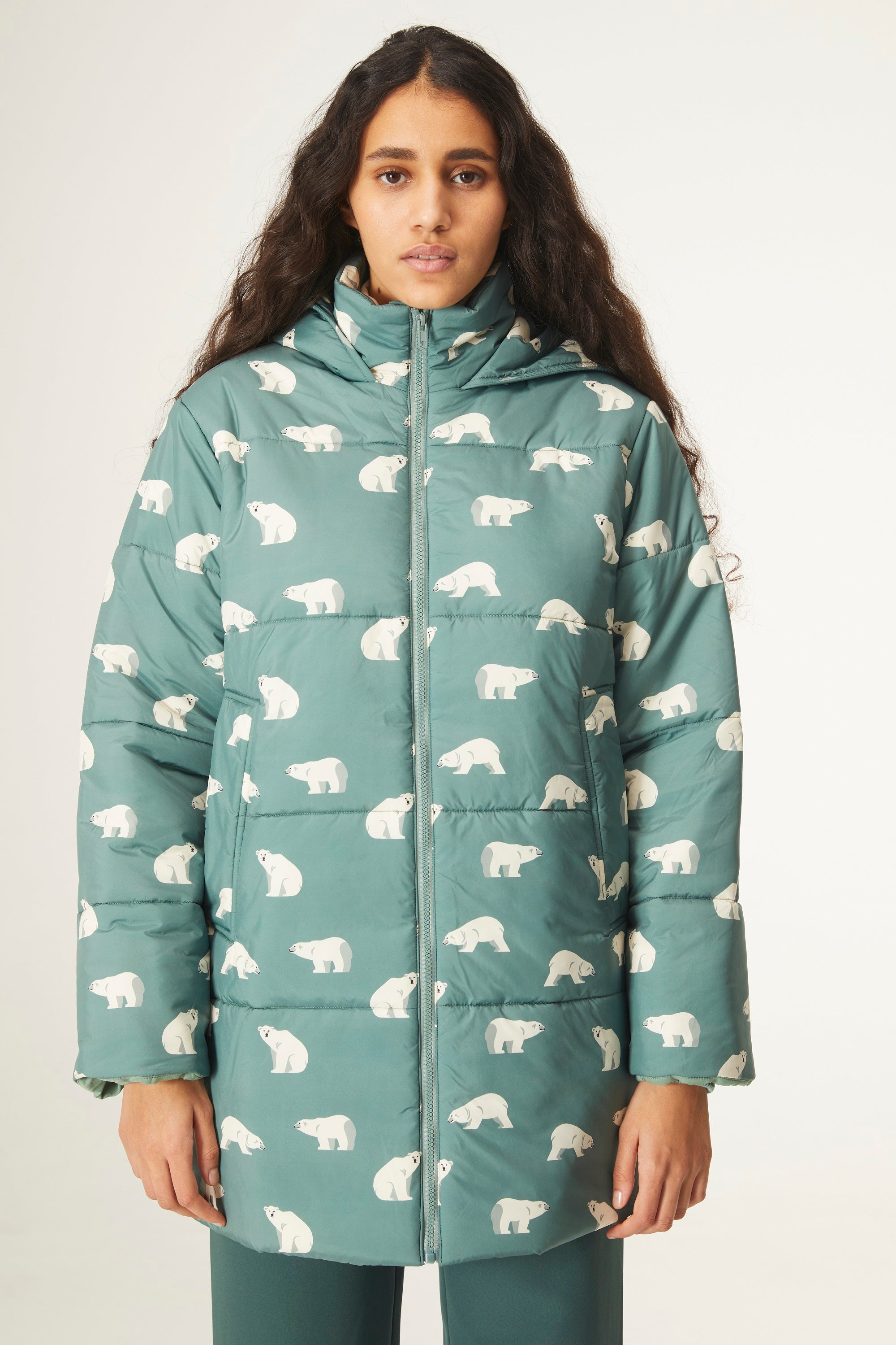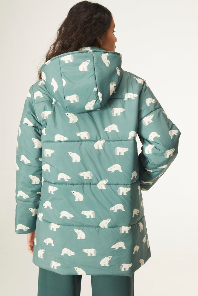 Polar bear print quilted midi coat with hood by Compania Fantastica