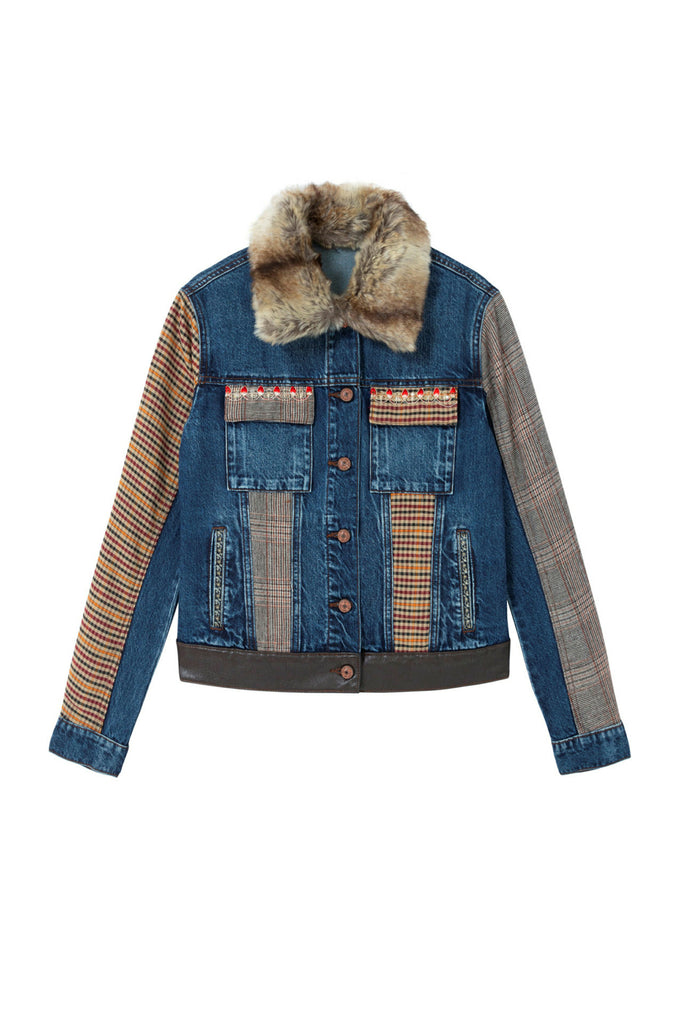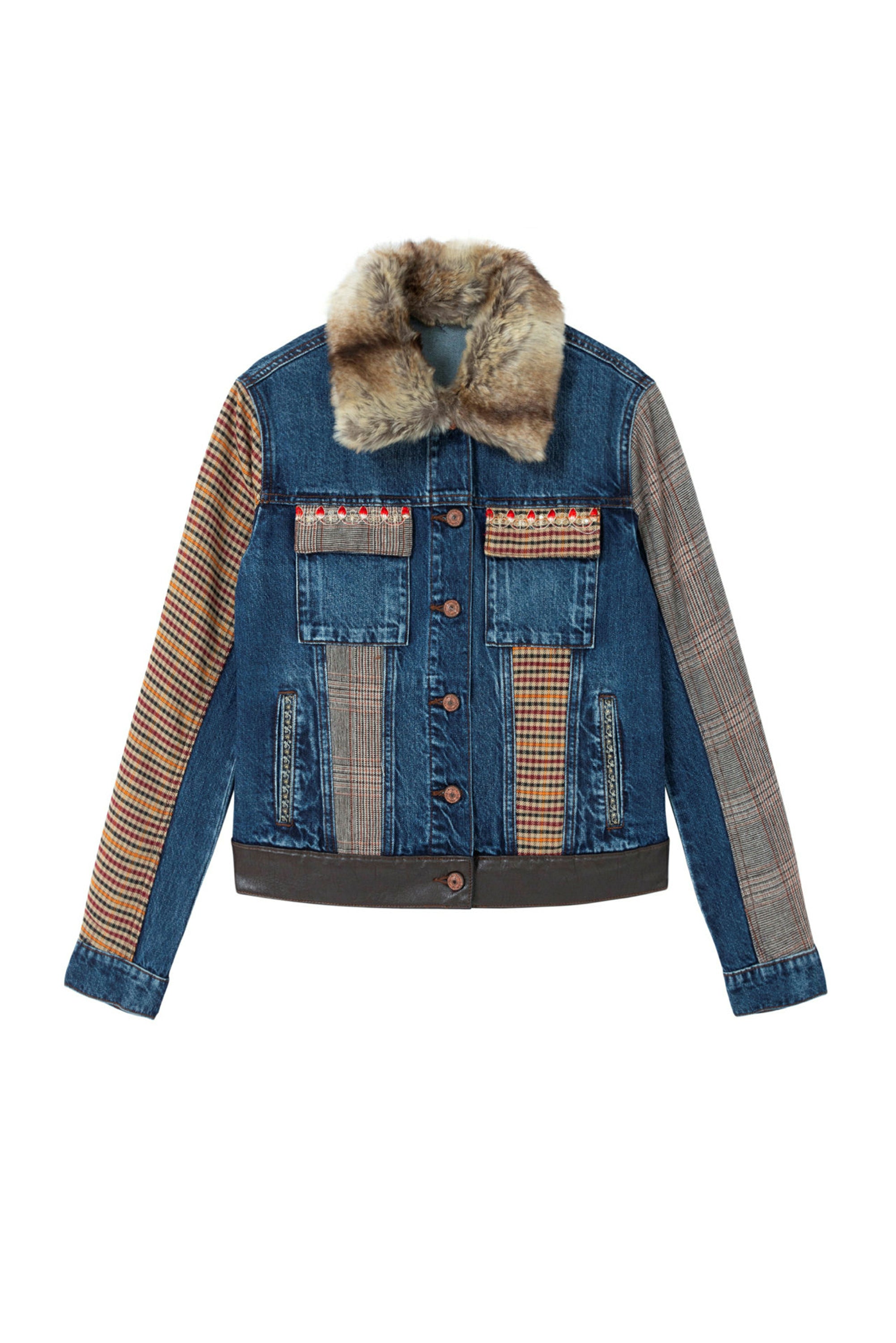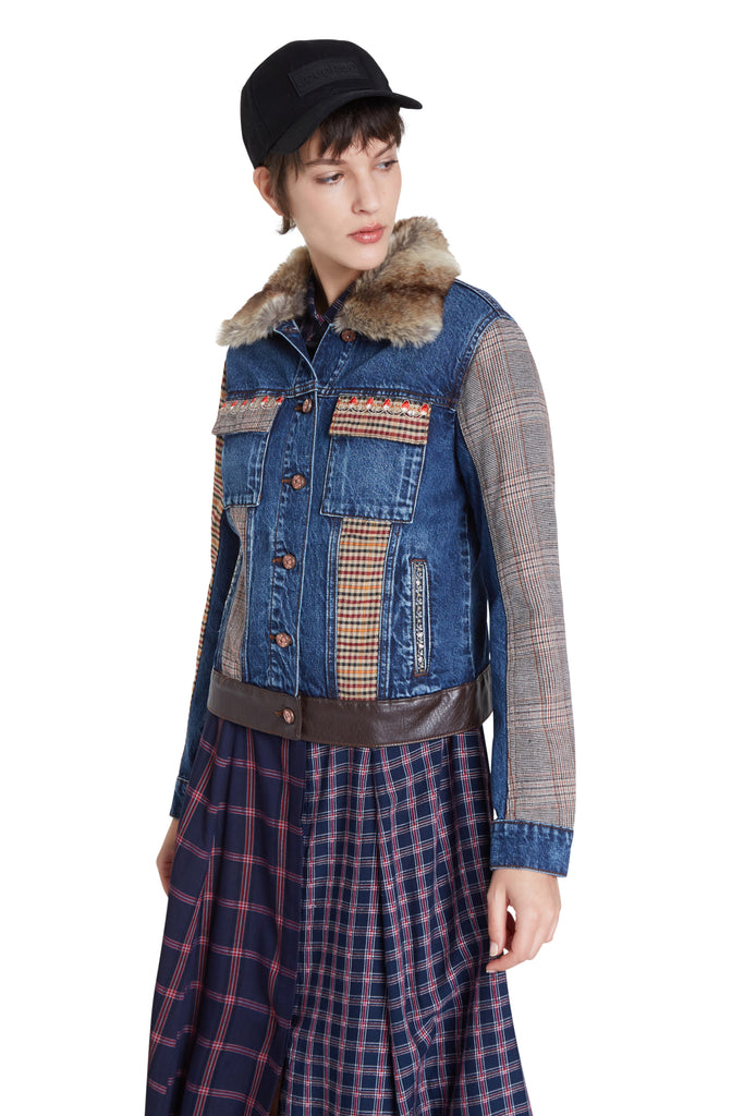 Almu Blue Denim, Tweed & Tartan Jacket with Faux Fur Collar Desigual Style 20WWED22