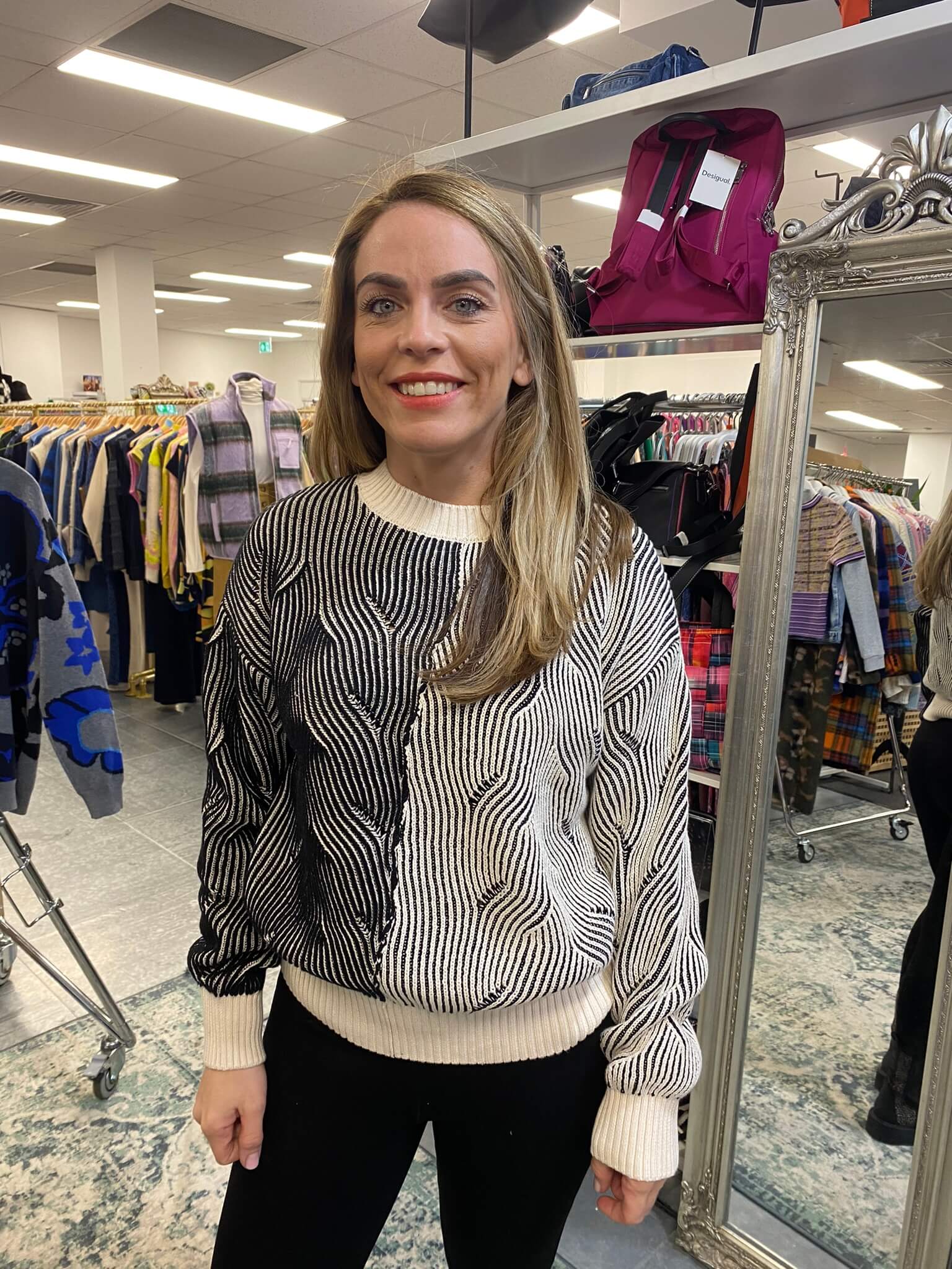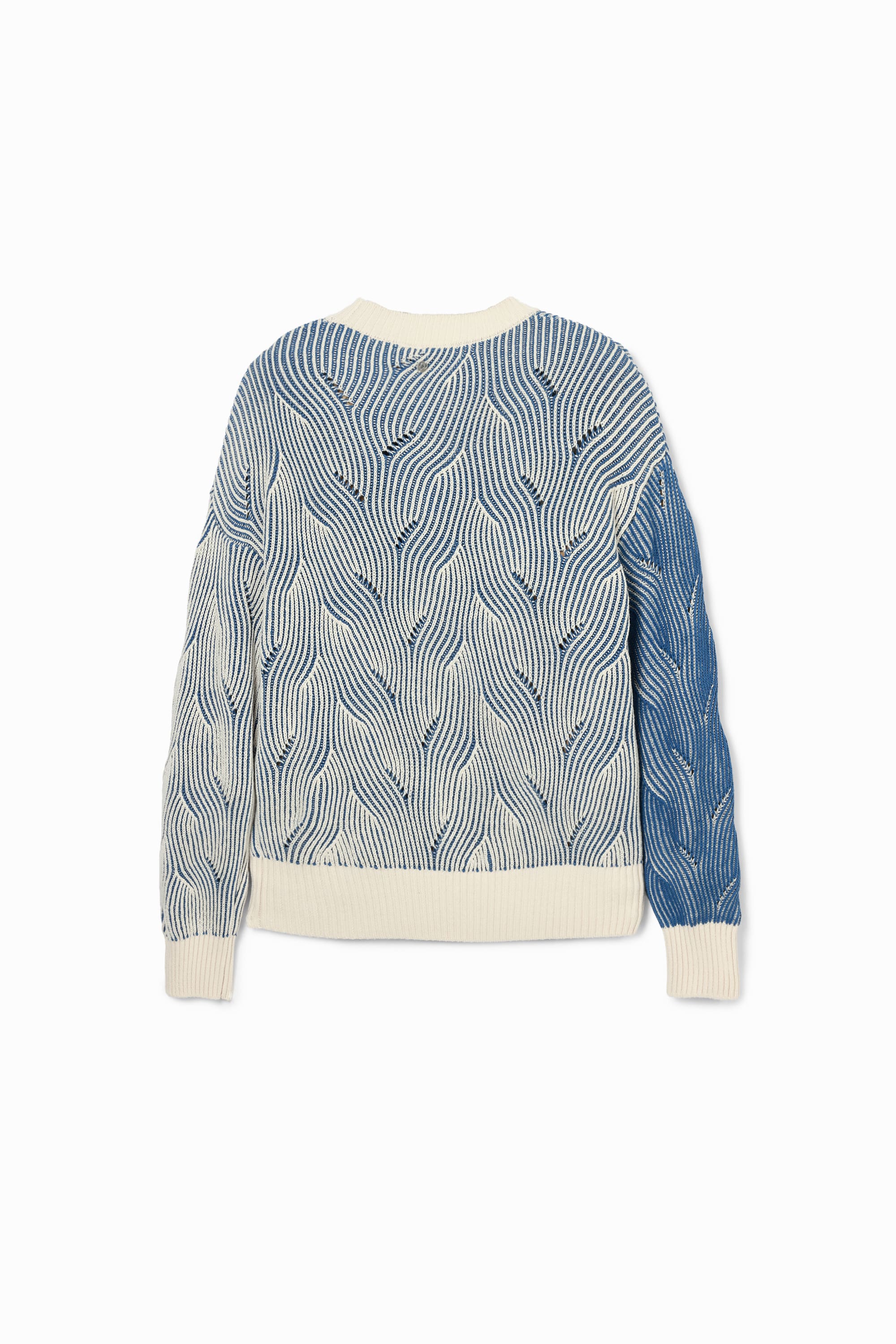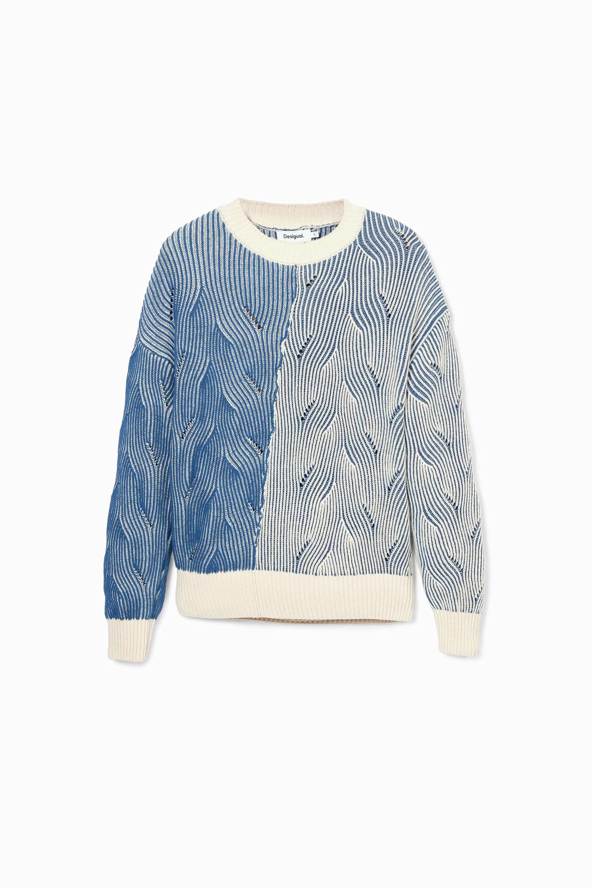 Long-sleeved knit sweater with a round neck and bicolor embossed print Fit: Regular Two-tone print Round neck Long sleeve Without closure Details on the neck, hem, and cuffs When you buy cotton products from Desigual, you are supporting our investment in Better Cotton. This product is sourced through a mass balance system and may not contain Better Cotton. bettercotton.org/massbalance Model’s measurements: Height: 177 cm; Waist: 57 cm; Hip: 87 cm Model size: M SKU: 24WWJF105036 Product Sustainability Better Cotton Composition and care Outer fabric composition: 97% COTTON, 3% POLYAMIDE
