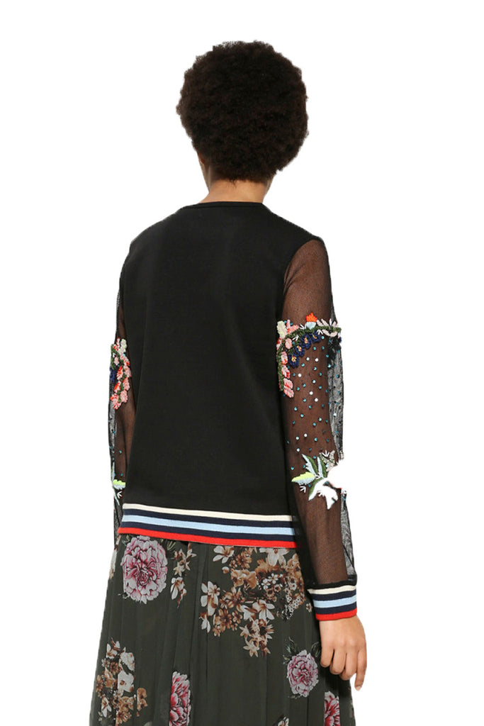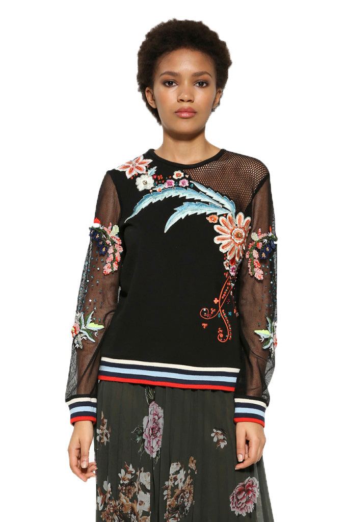Brigitte Black Mesh & Floral Embroidery Sweater Desigual Style 17WWSK03 - UK 14 (42 / L / 32) / Black is backordered and will ship as soon as it is back in stock.