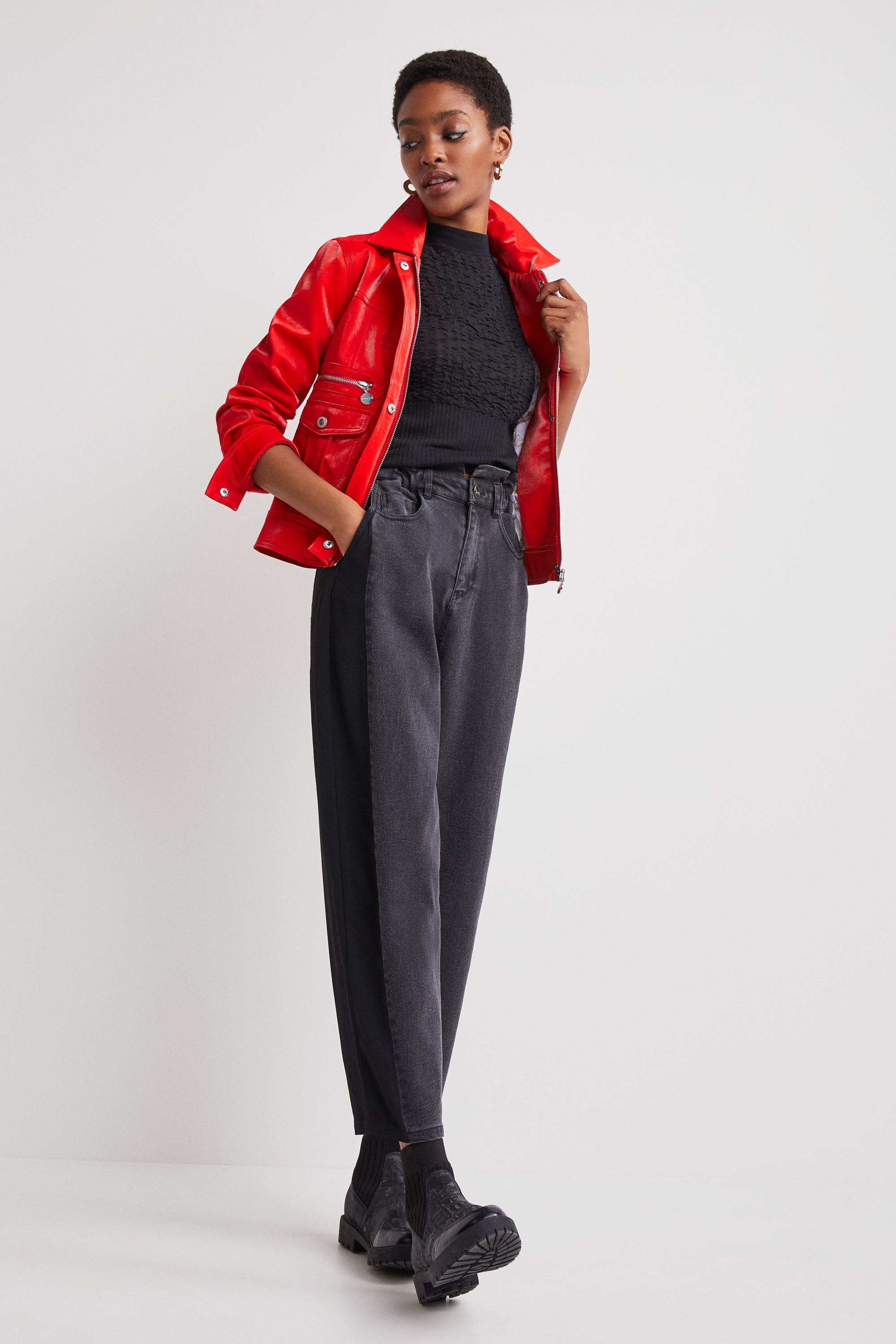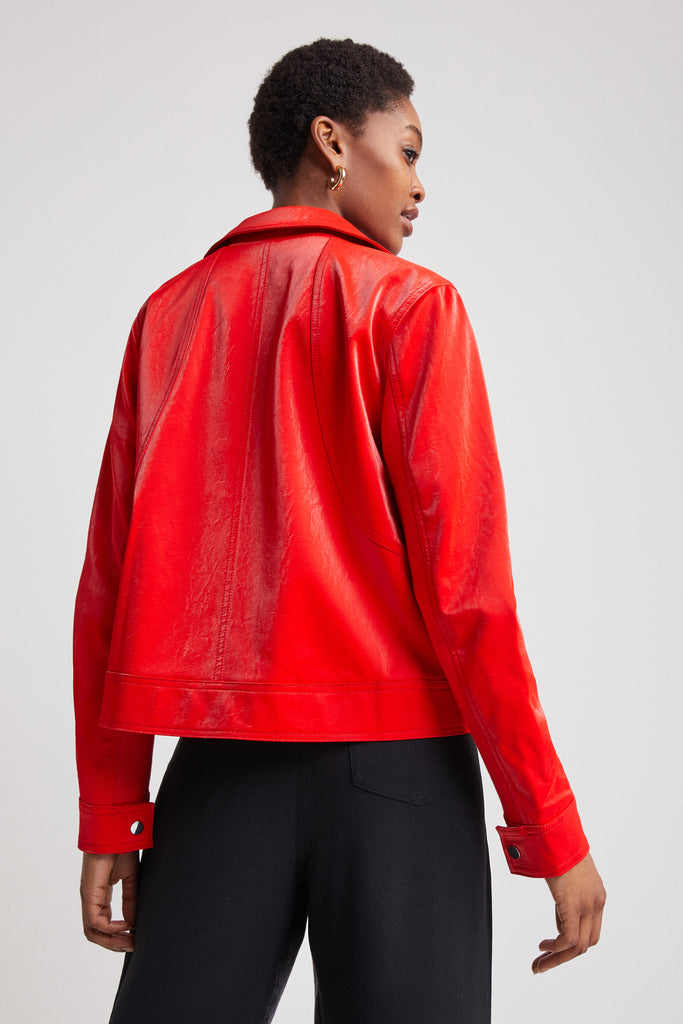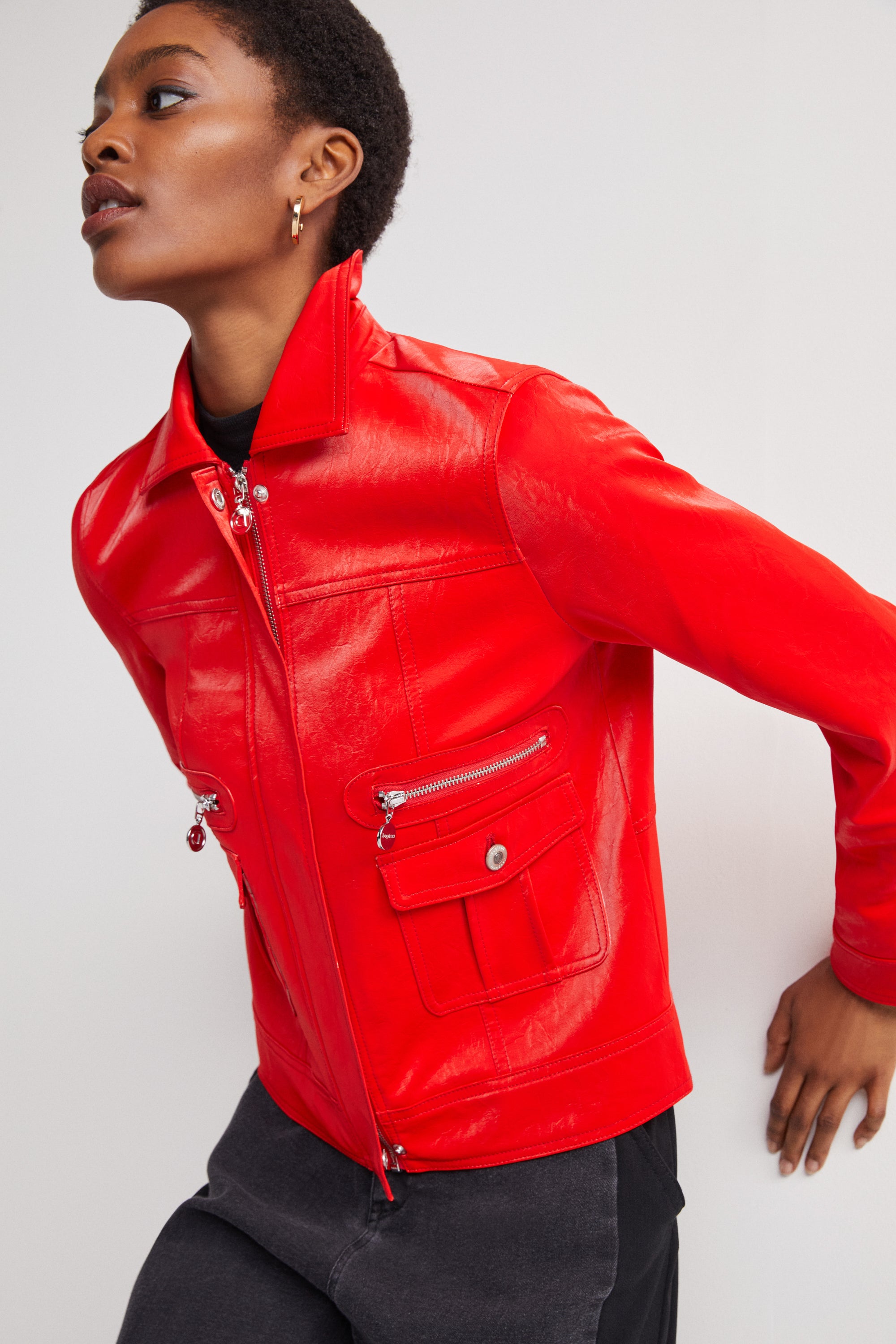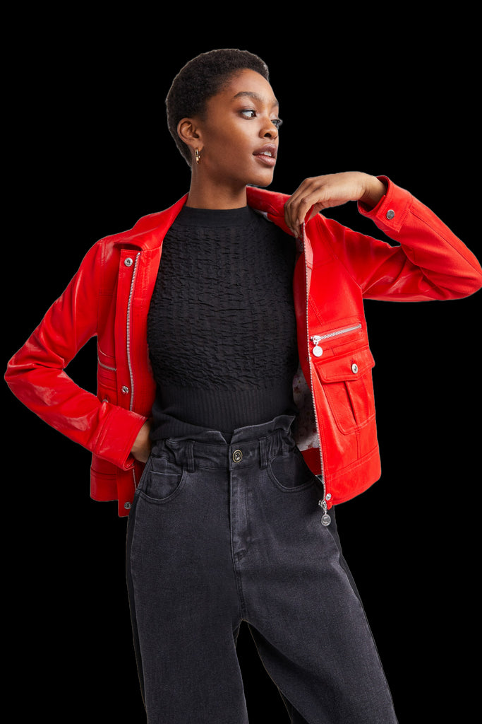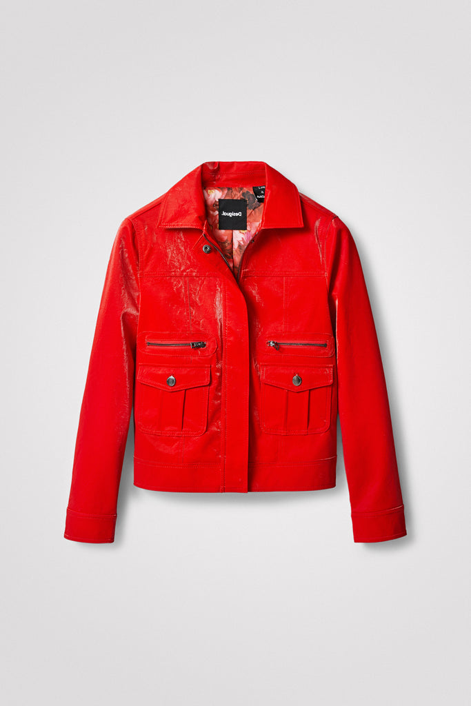 Desigual Primavera Glossy Faux Leather Jacket Red 22SWED31