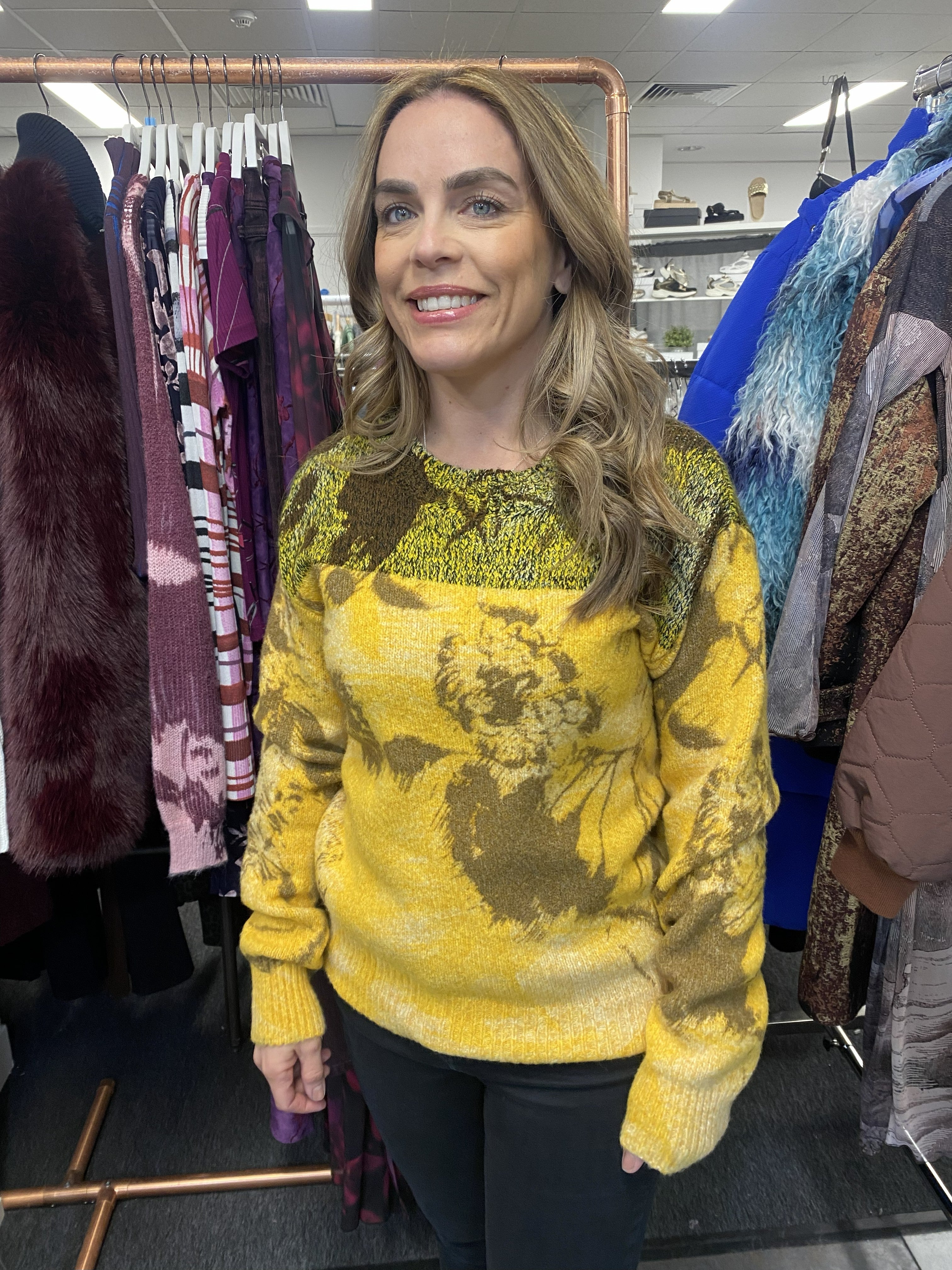 Desigual Adak Mustard Floral Jacquard Jumper 25WWJF30