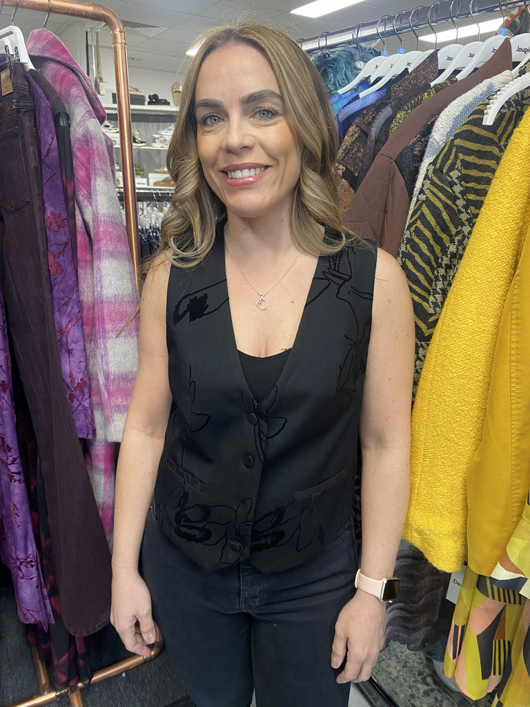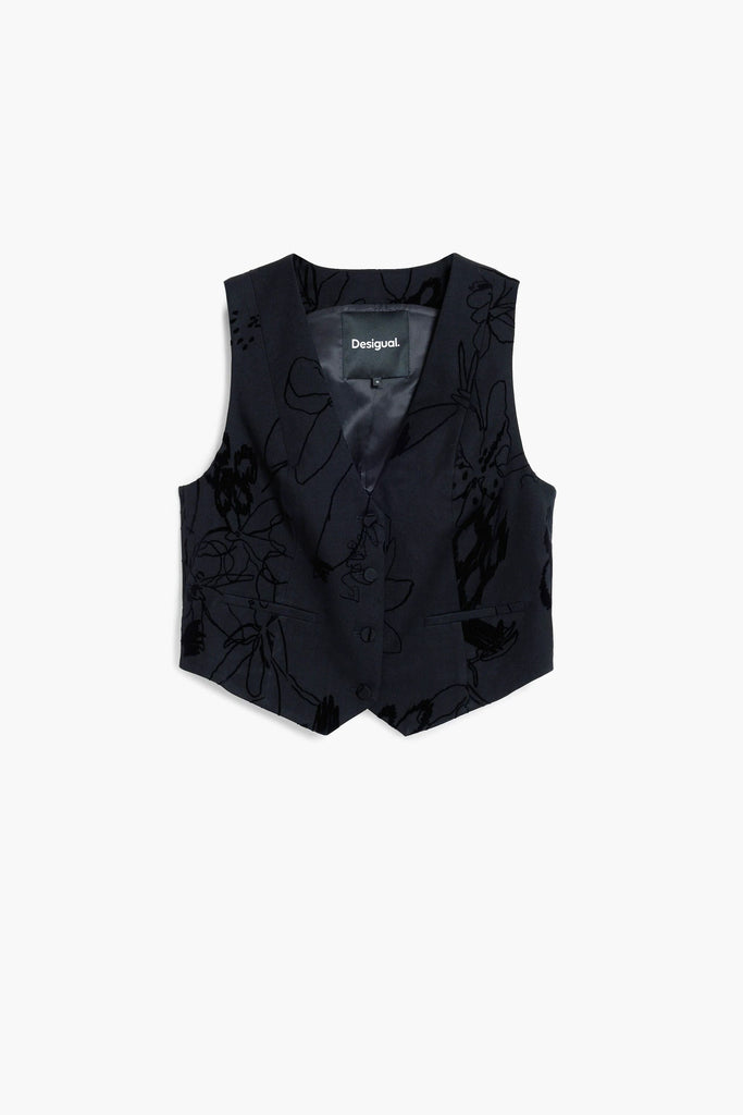 Desigual Flock Tailered Black Waistcoat with Flocking 25WWEW70