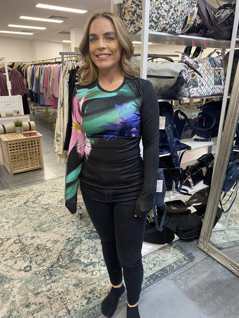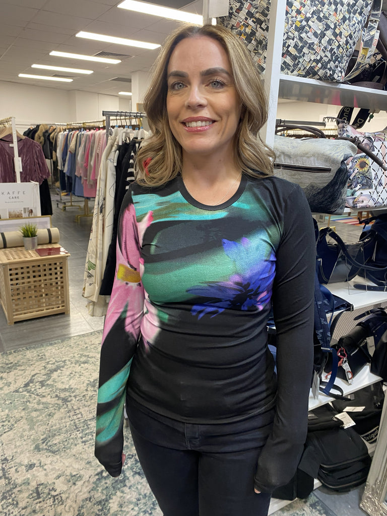 Soft-touch long-sleeve T-shirt with a round neck and watercolor-style floral print.