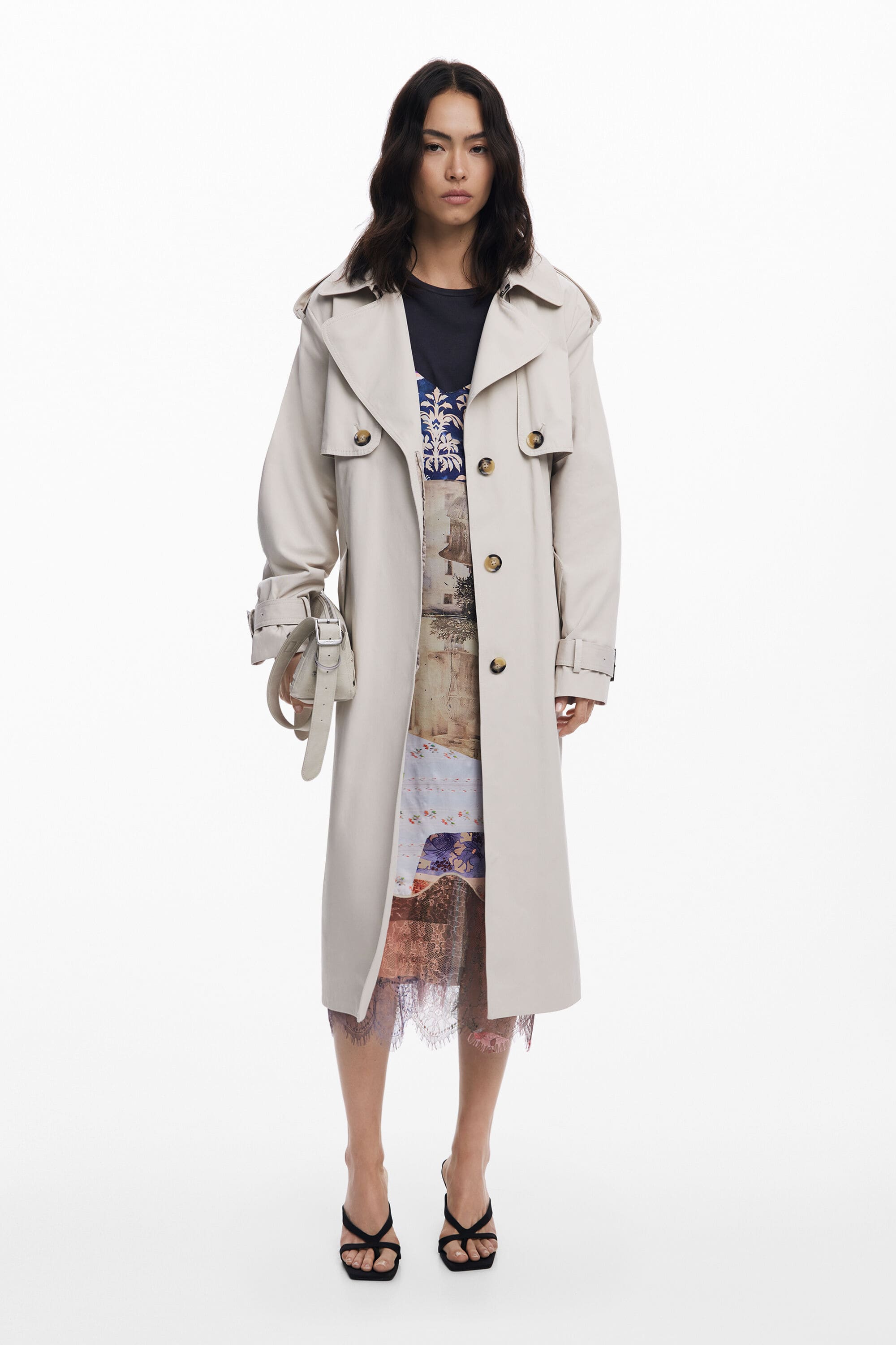 Desigual Plated Back Trench Coat in Stone 25WWEW18