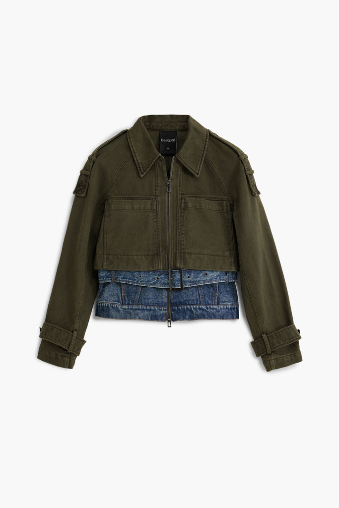 Desigual Tropez Khaki & Denim Combination Short Parka Jacket 25WWEW54