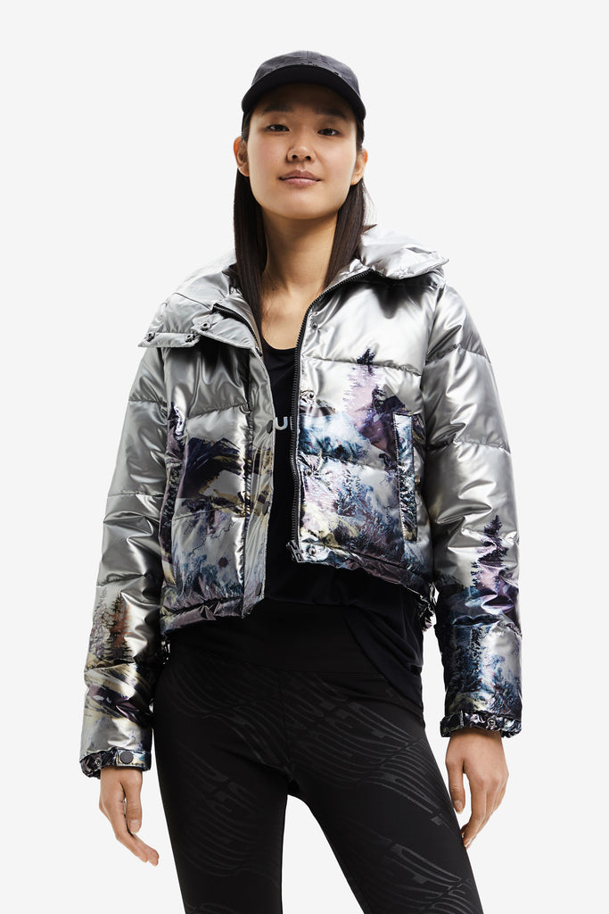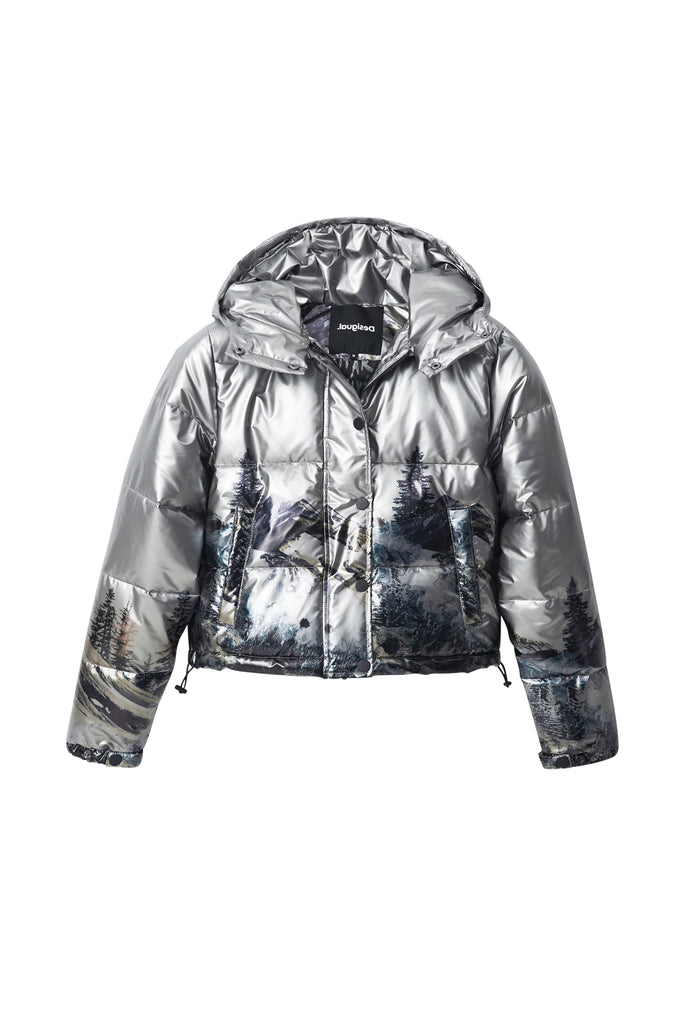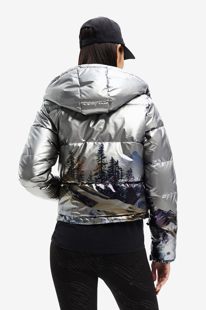 Desigual Padded Vintage Landscape Metallic Silver Coat 22WWEW73 AW22