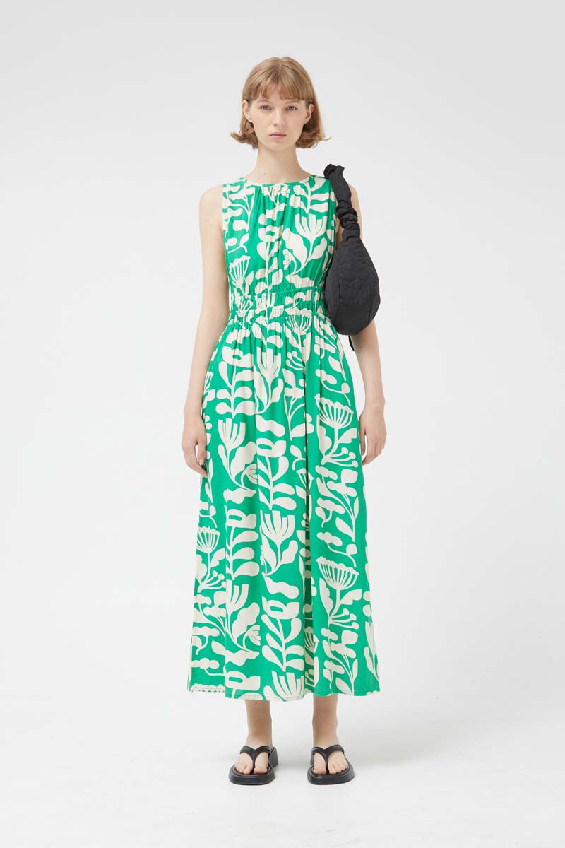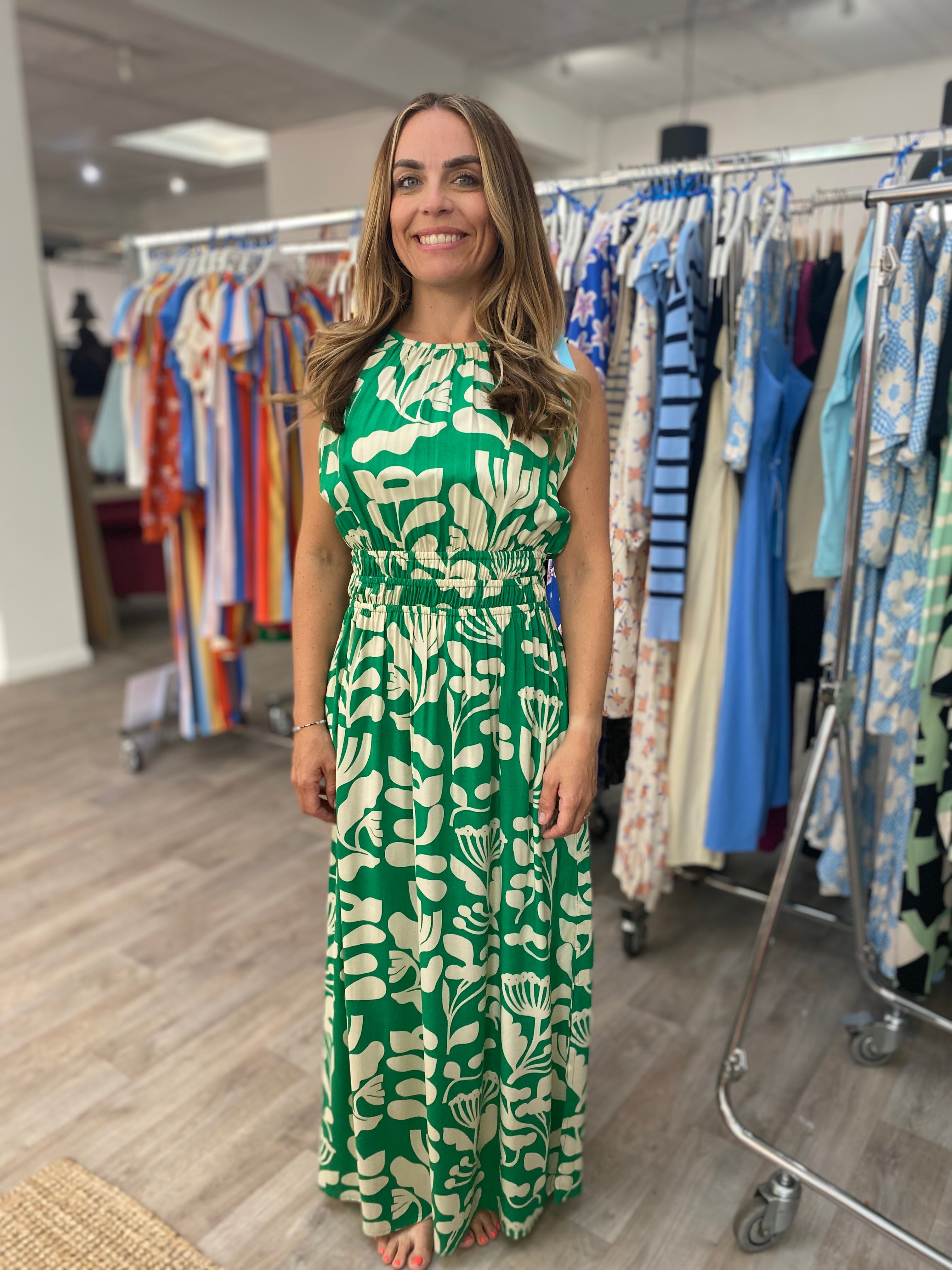 Compania Fantastica Hydrangea green floral sleeveless long dress