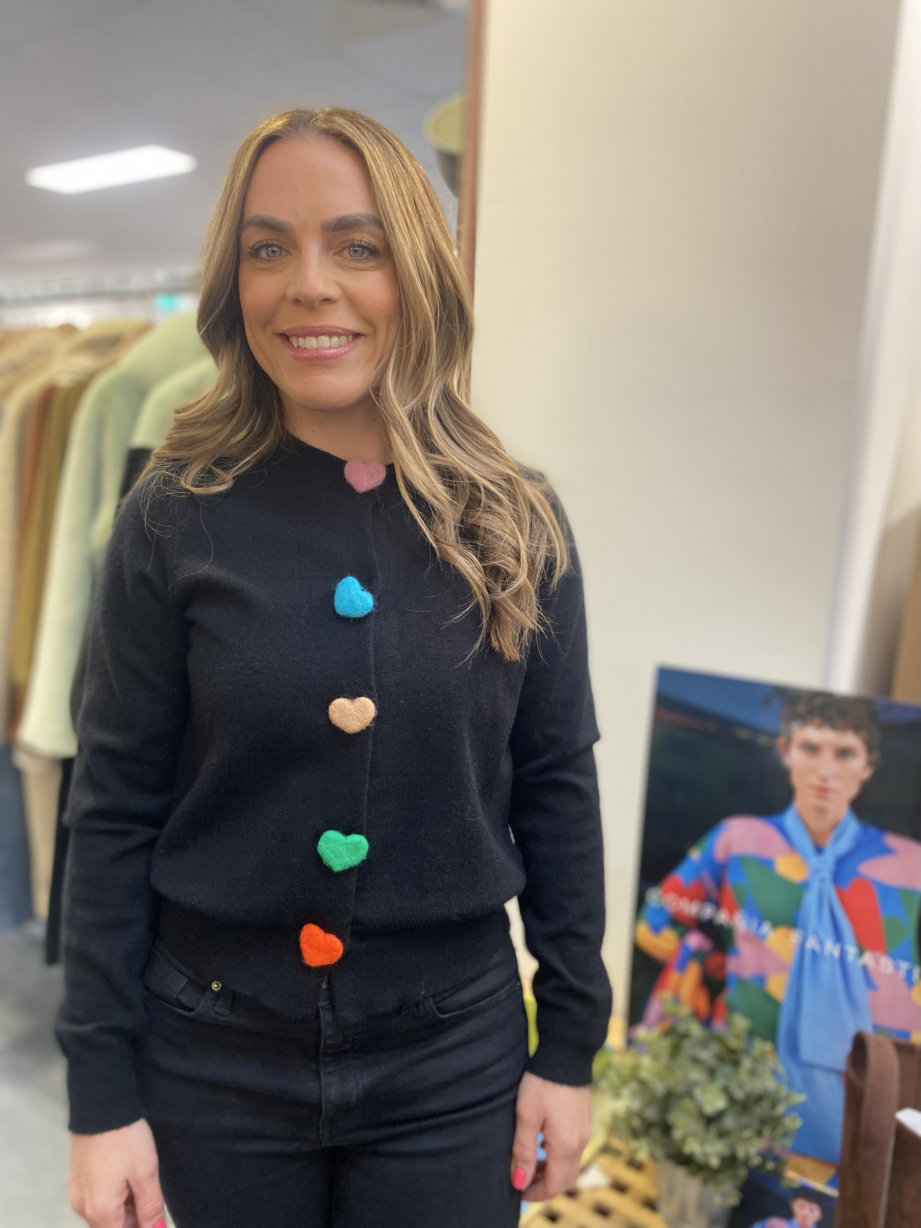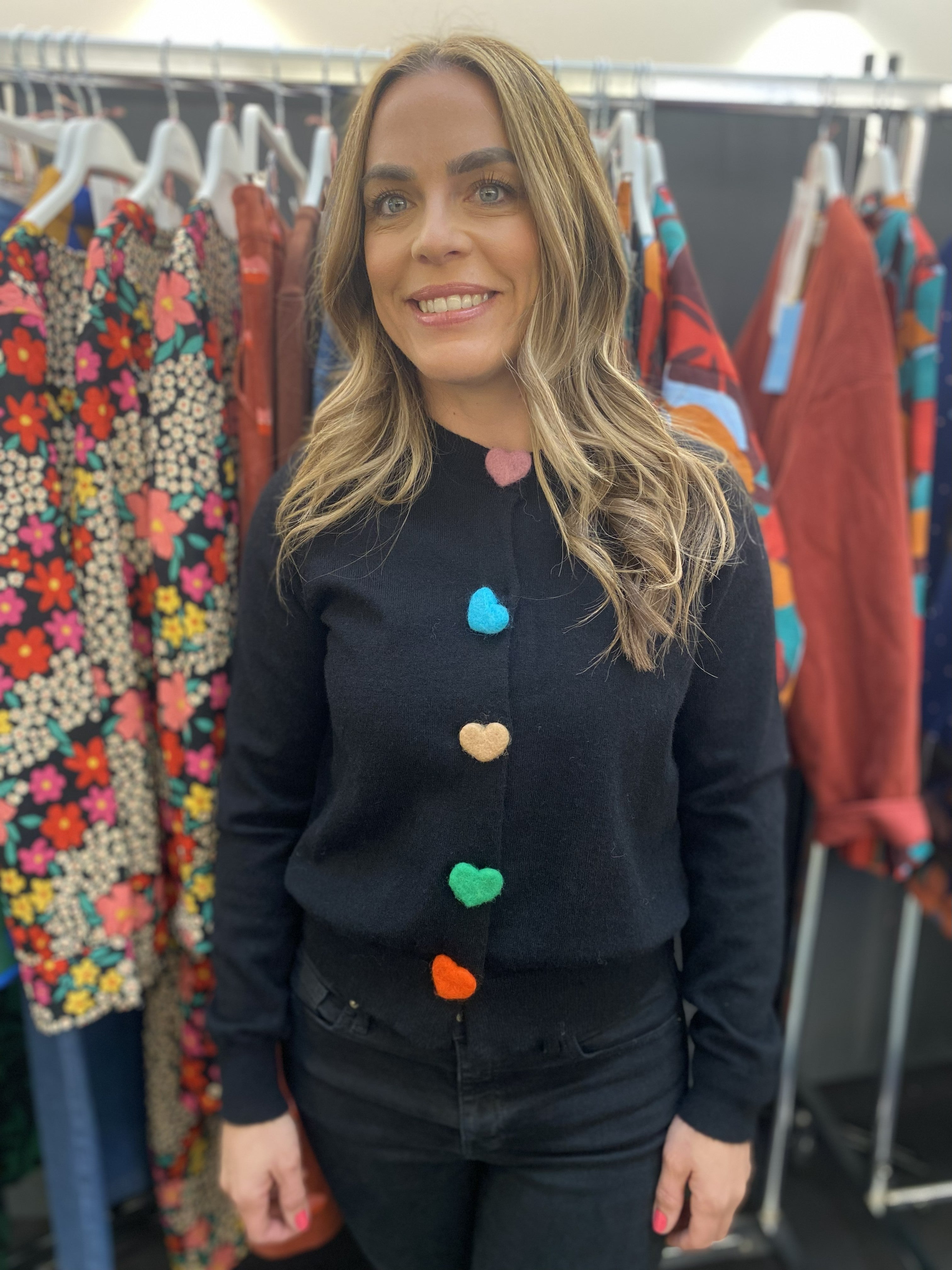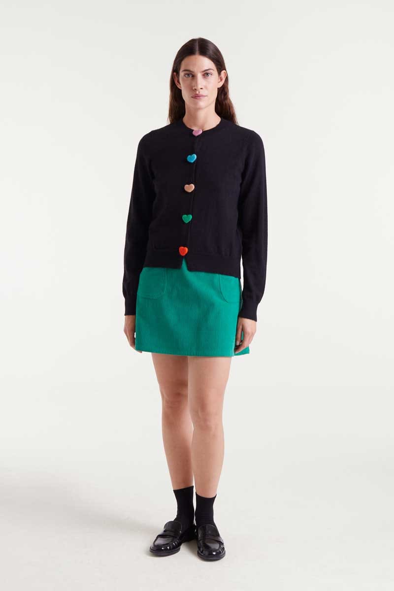 Compania Fantastica Black knitted cardigan with multicoloured heart buttons