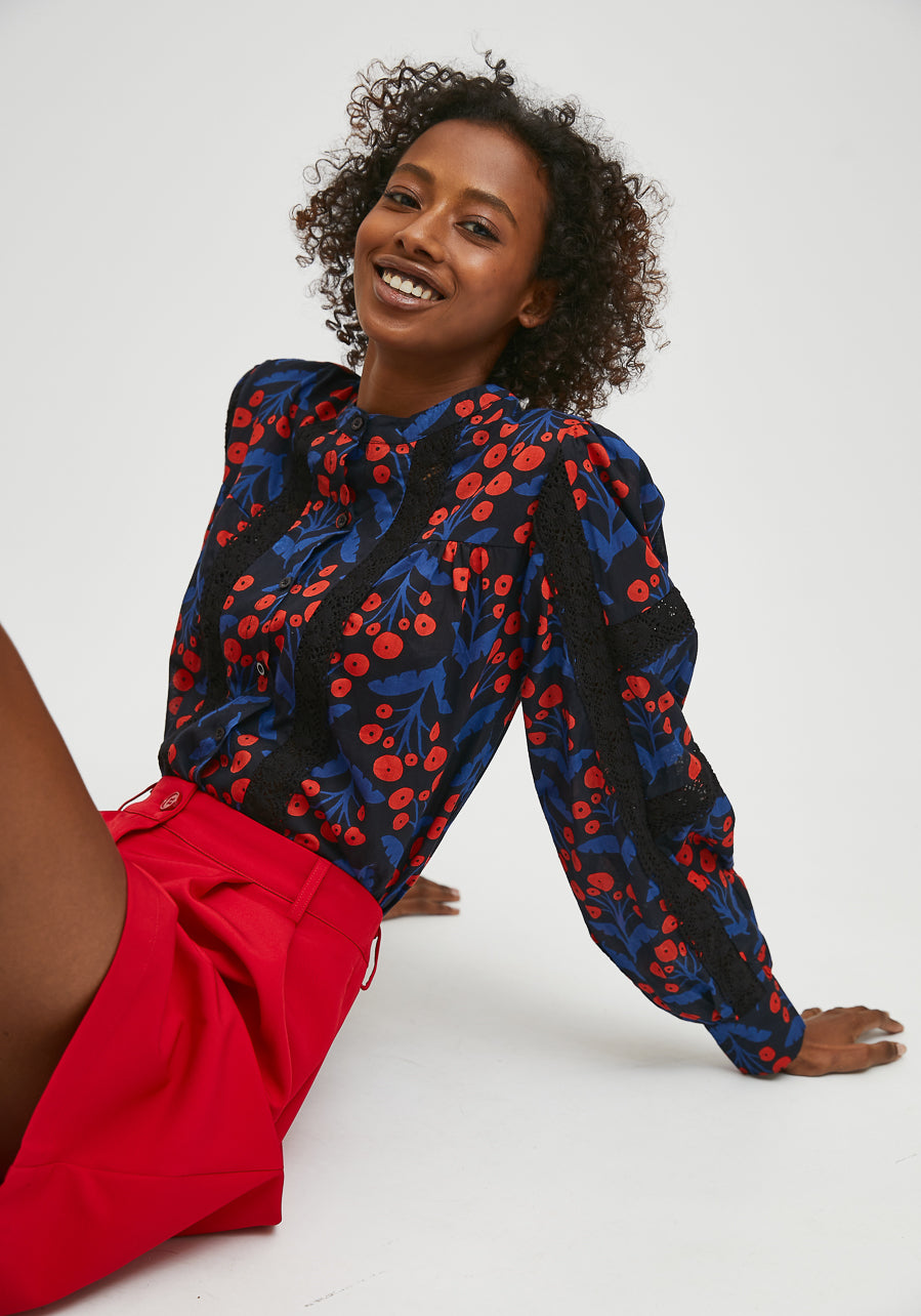 Compania Fantastica Poppy Print Long-sleeved shirt with lace FA21PIC05
