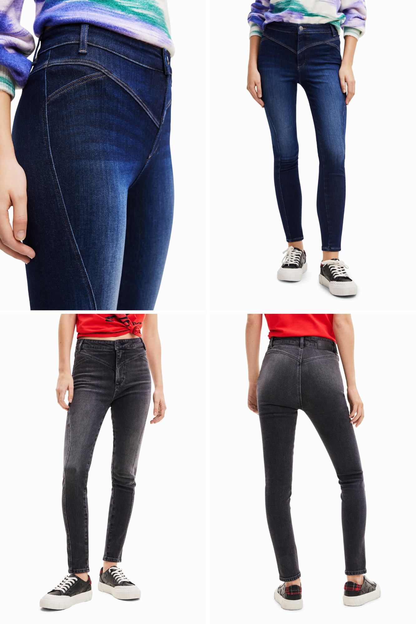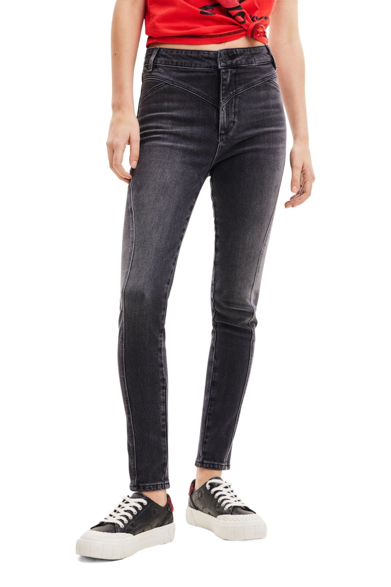 Desigual Estraburgo Jeans 23WWDD42 Mid-rise fitted jeans in a very comfortable stretch fabric, with a push-up effect on the derriere and embroidered details.