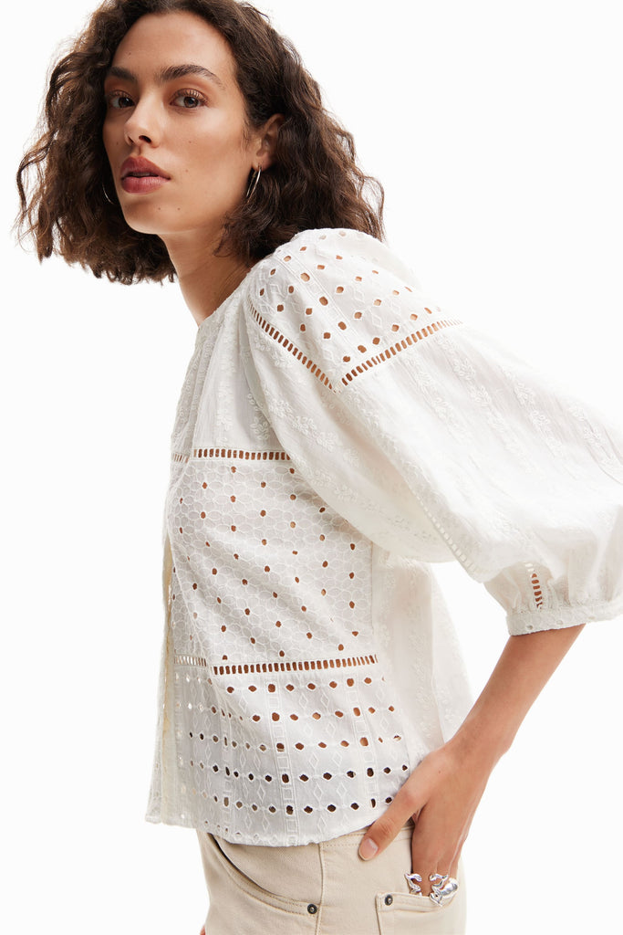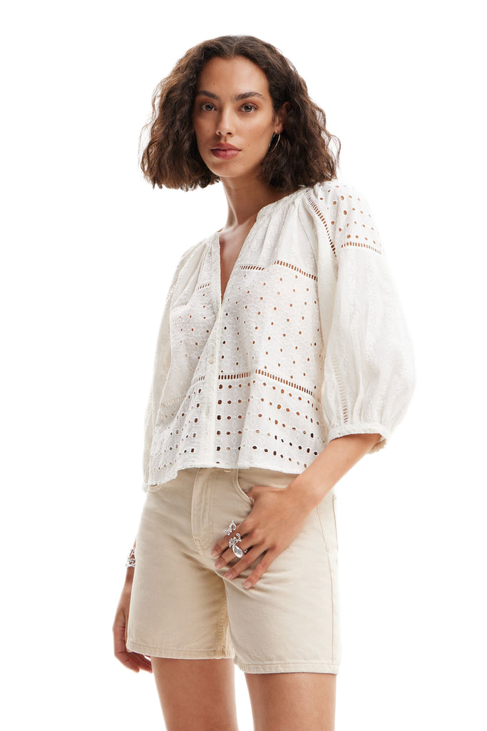 Desigual Julieta Off-white Cutwork Gypsy Blouse 24SWBW27