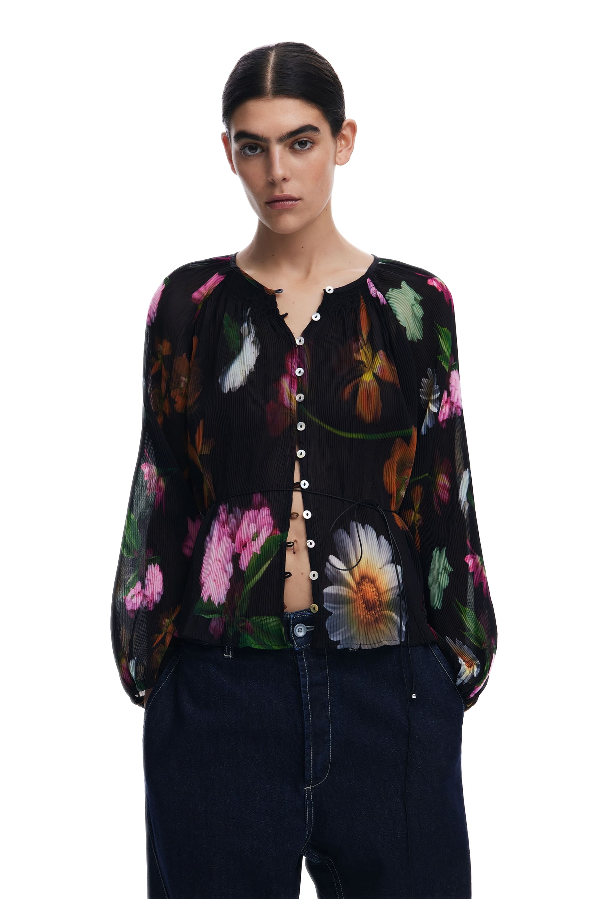 Desigual Momo Black Floral Long Sleeved Blouse 25SWBW11