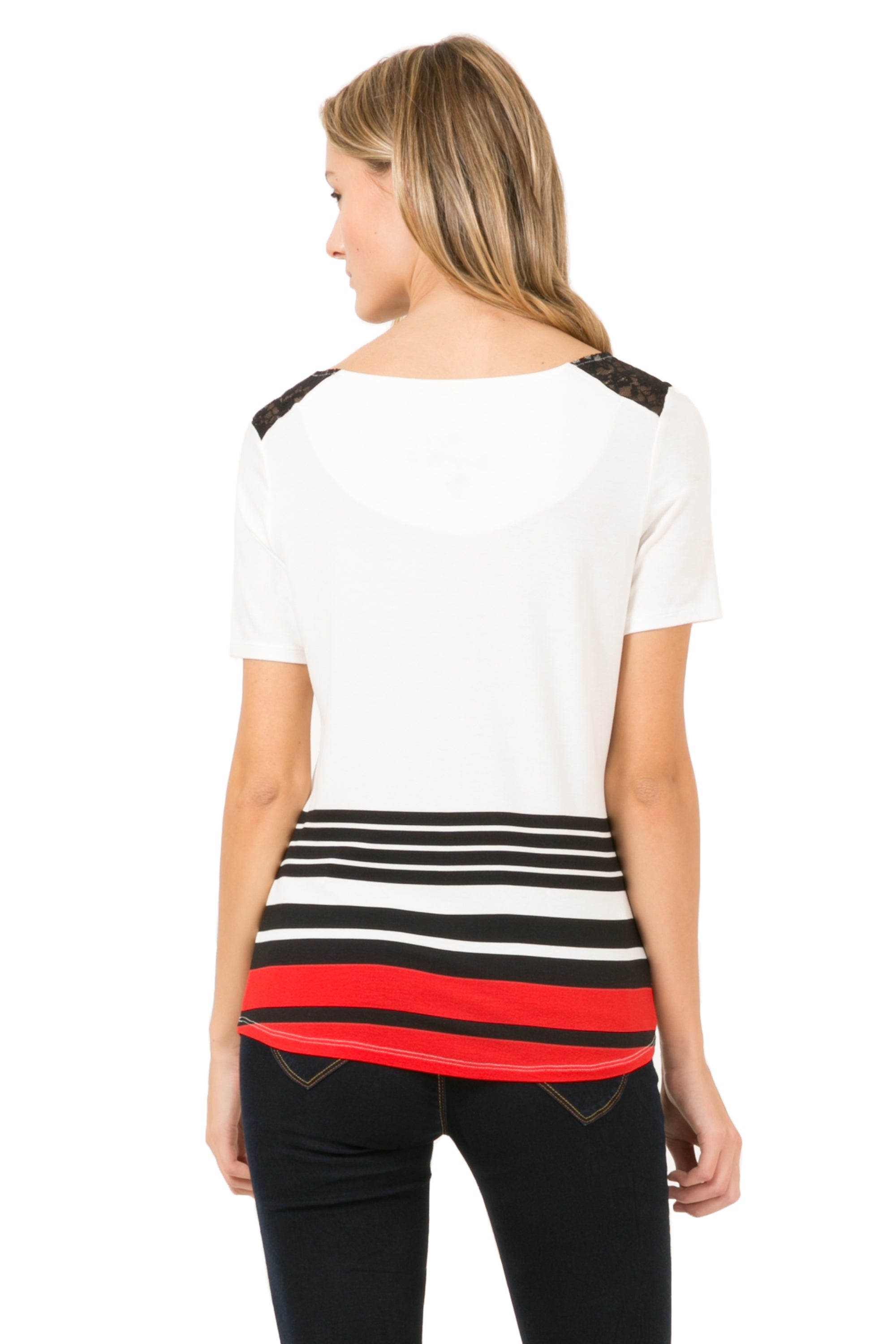 Enero Stripe Oriental Flowers T-Shirt Desigual Style 61T25Q2 - UK 14 (42 / L / 32) / White is backordered and will ship as soon as it is back in stock.