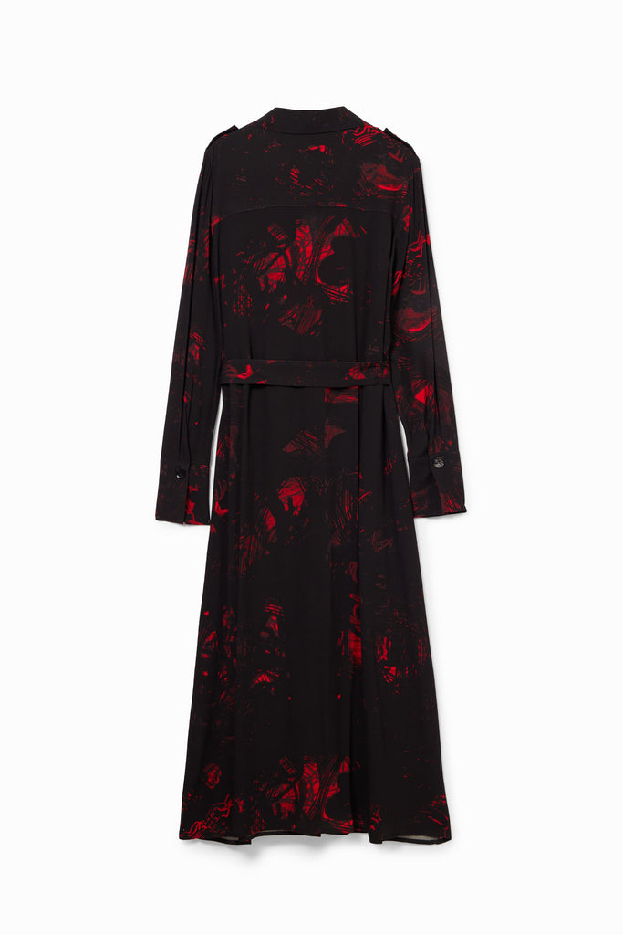 Midi shirt dress, long sleeves, button closure with removable belt and floral print designed by M. Christian Lacroix