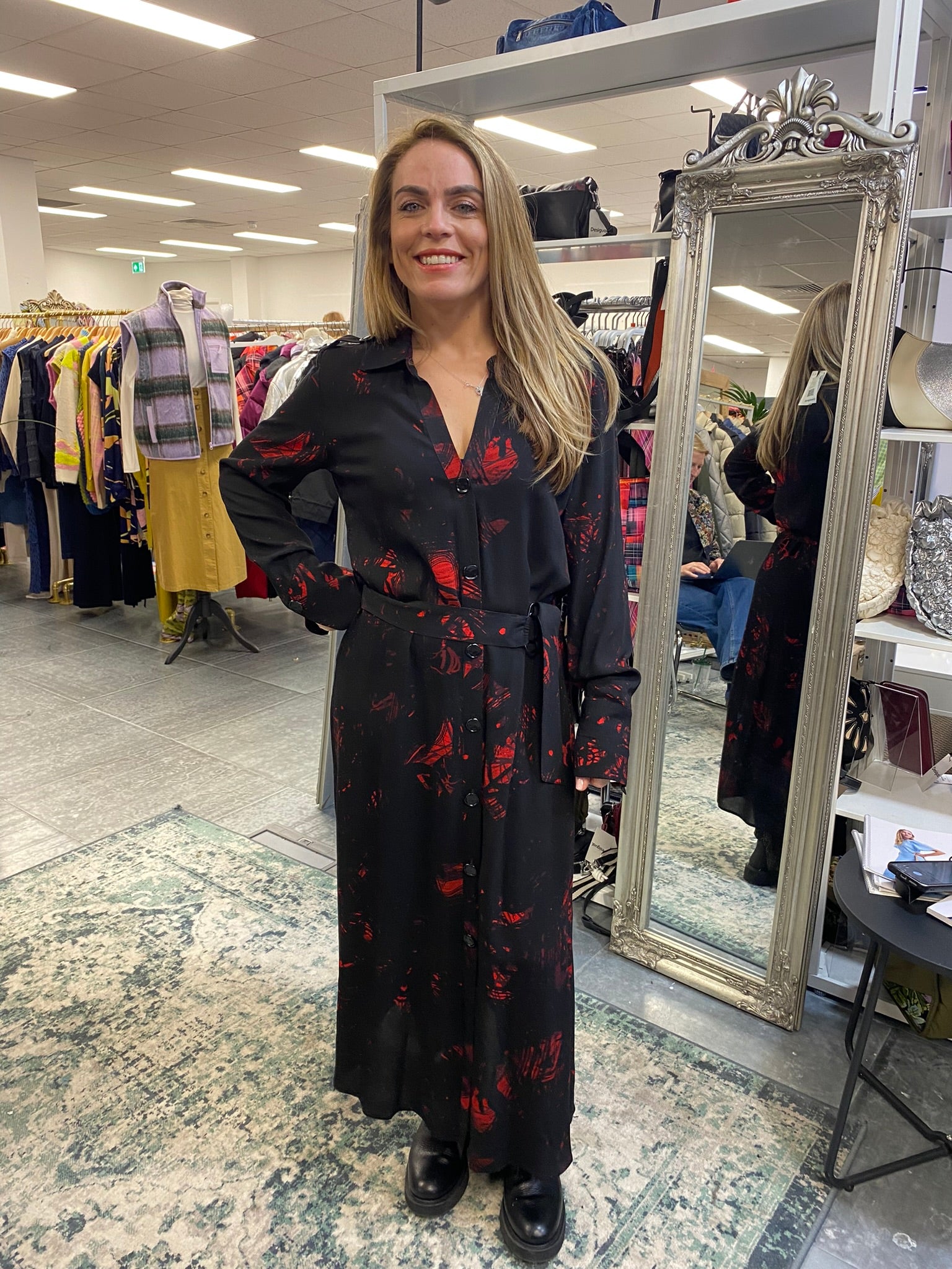 Desigual M. Christian Lacroix Black Red Midi Shirt Dress