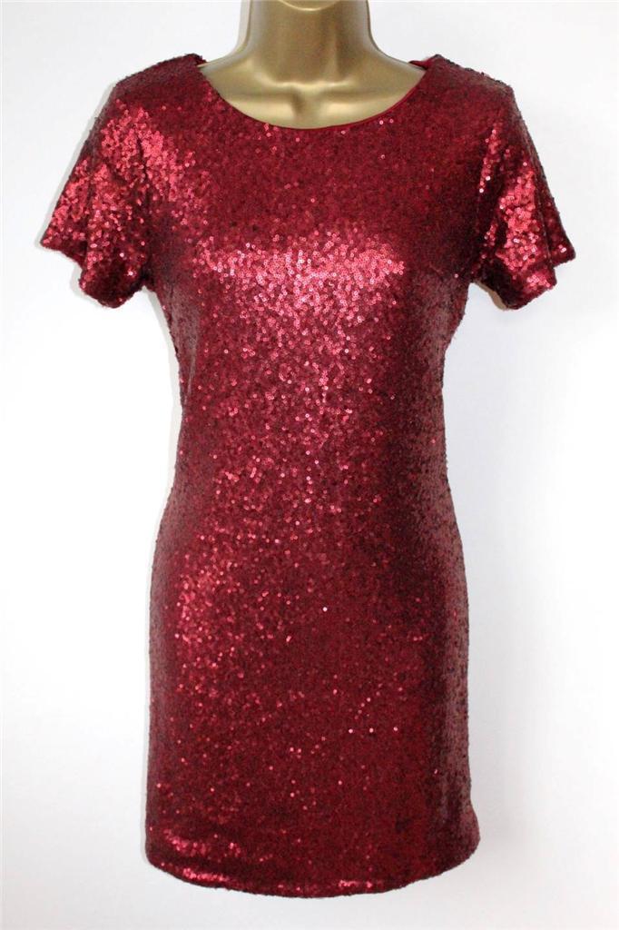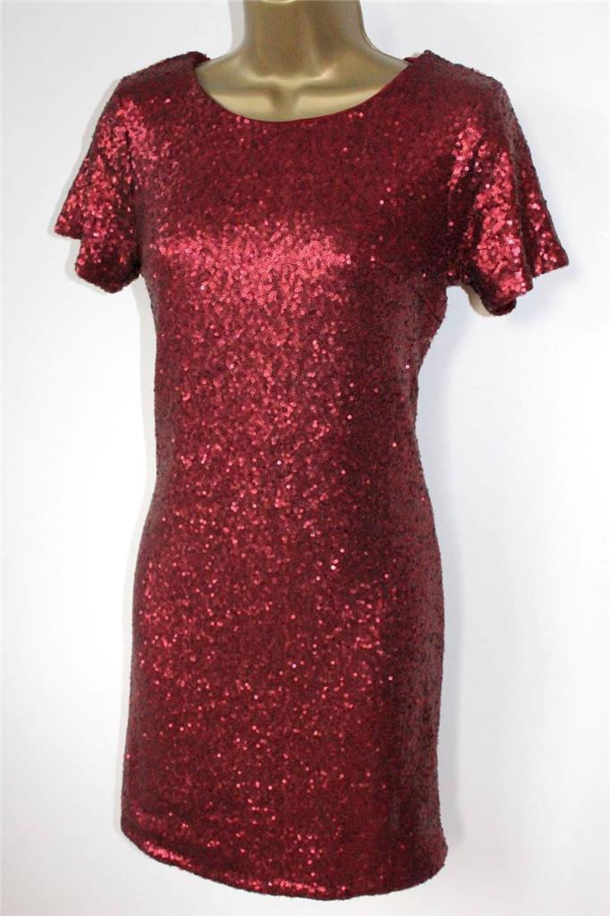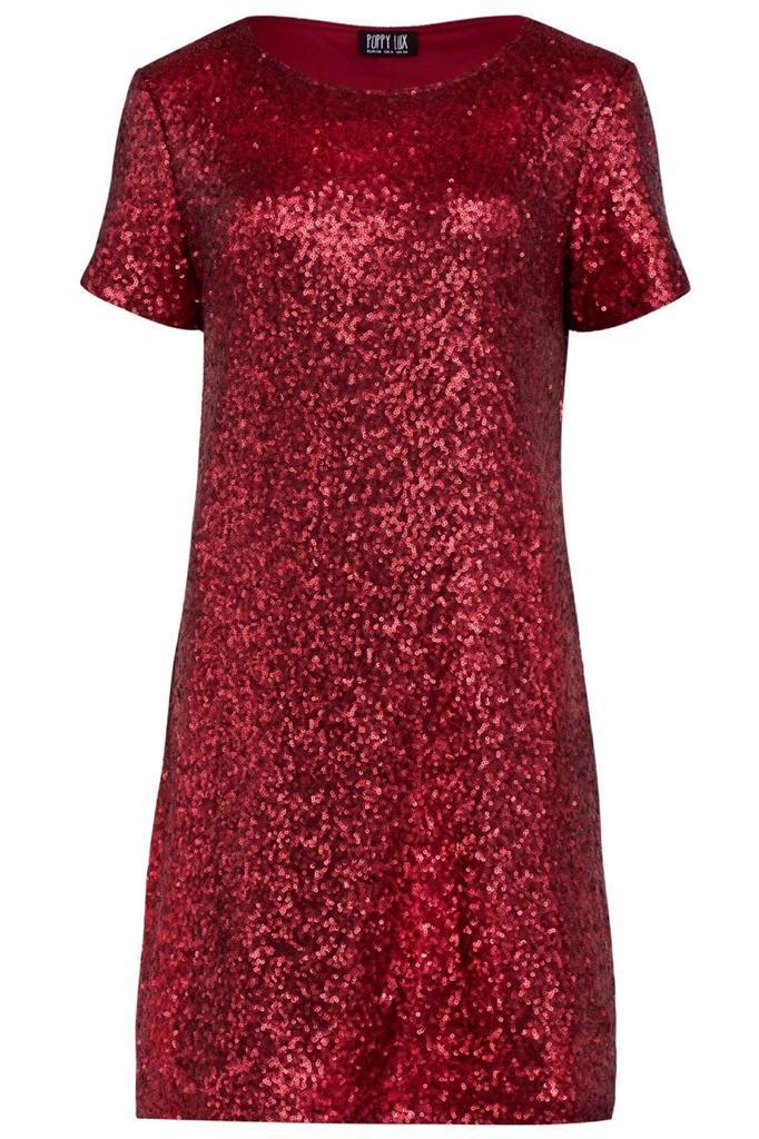 Poppy Lux Ruby Dress 8-16 RRP£59 Glamorous Red Sparkly Sequin Party Tunic Shape