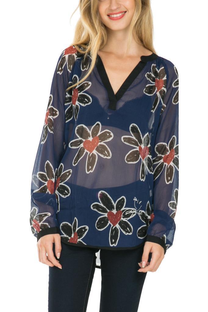 Happy Fun Heart & Floral Chiffon Blouse Desigual Style 57B23F9