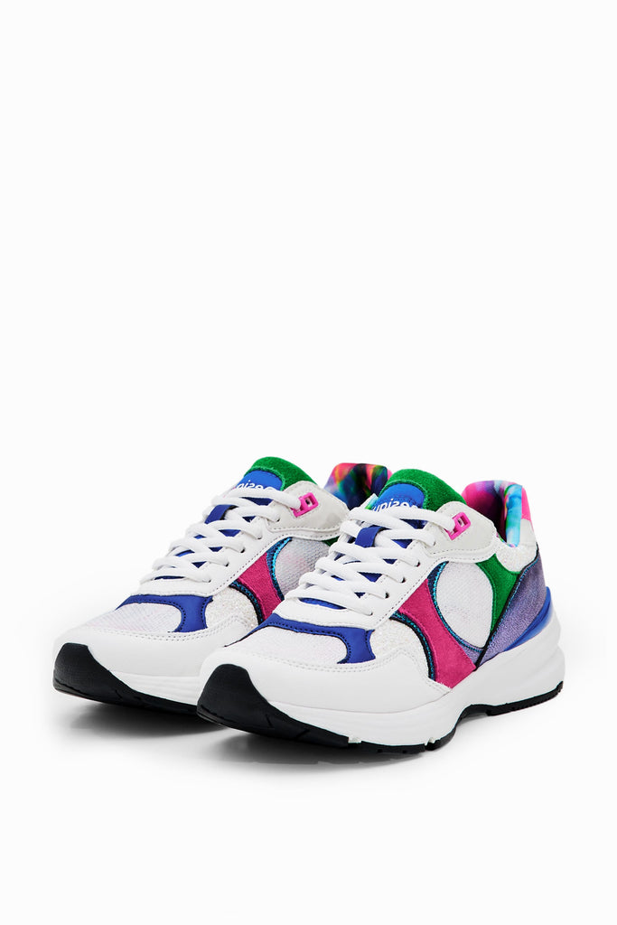 Desigual Moon Patch Flowers 23SSKP34 9019 Lightweight running sneakers with a patchwork of fabrics and materials and multicoloured lining.