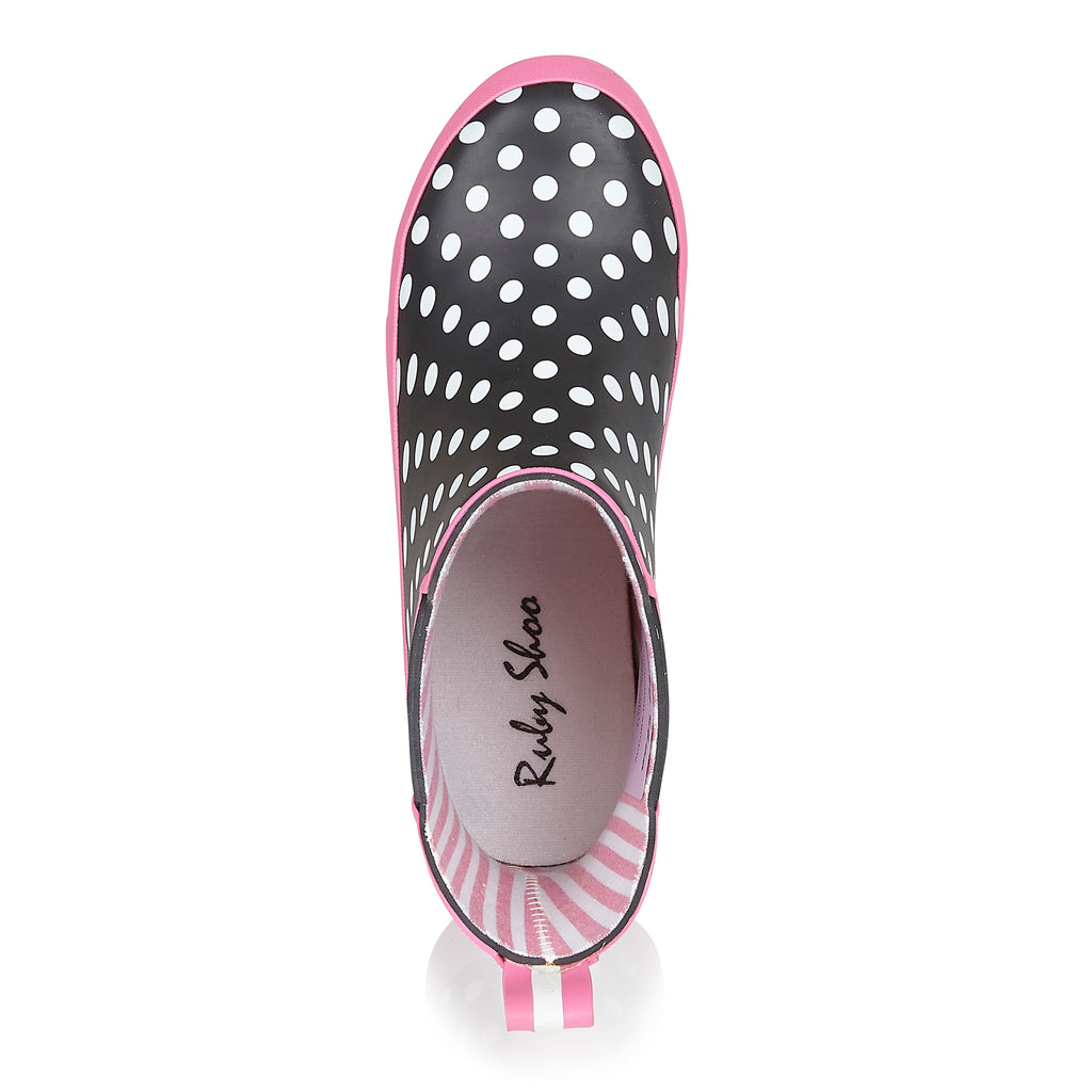 Ginny Black Spots Short Ankle Length Wellington Black Spots by Ruby Shoo