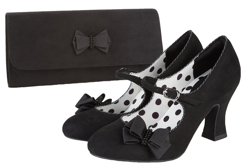 Celia Nero Black Mid Heel Mary Janes with Bow by Ruby Shoo