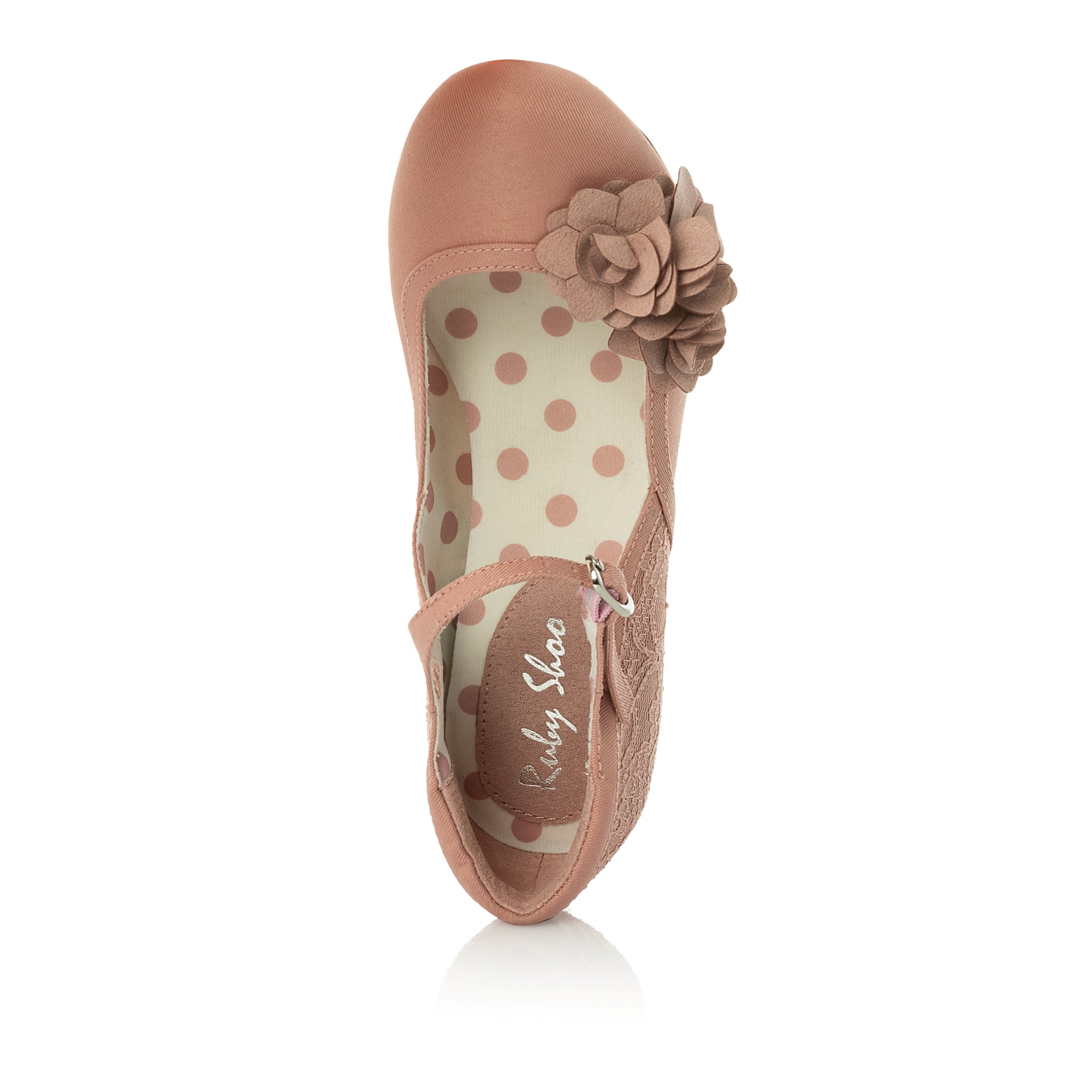 The bar shoe that we know and love is now on a sturdier 8cm heel. Perfect for when you'll be on your feet all day t featuring the brand new indulgence insole for supreme comfort. LYNN comes in an array of colours and is your go-to occasion shoe. Faux suede uppers with lace overlays on satin feature an intricate trim and stunning flower corsage. Gold metallic or co-ordinating polka dot linings make the inside as special as the outside! The 'Mary Jane' style adds support with straps and adjustable buckle. Upper: textile/other Lining: textile Sock: textile Sole: other. Vegan friendly. Heel height 80mm Indulgence Collection Features ~Super-soft interior cushioning every step with an extra deep foam insock ~All day comfort contoured insock ~New carefully designed shapes leaving extra room for toes ~High resistance memory foam ~Stability insole ~Arch support with added durability ~Reduced pressure points ~Flexible soles that move with your feet