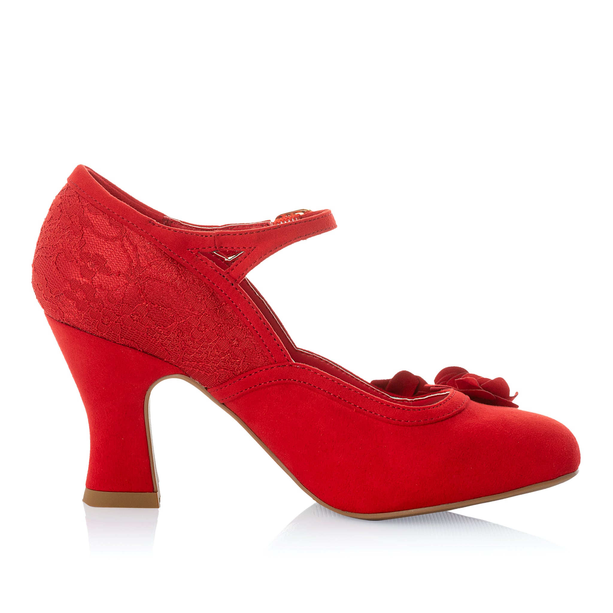 The bar shoe that we know and love is now on a sturdier 8cm heel. Perfect for when you'll be on your feet all day t featuring the brand new indulgence insole for supreme comfort. LYNN comes in an array of colours and is your go-to occasion shoe. Faux suede uppers with lace overlays on satin feature an intricate trim and stunning flower corsage. Gold metallic or co-ordinating polka dot linings make the inside as special as the outside! The 'Mary Jane' style adds support with straps and adjustable buckle. Upper: textile/other Lining: textile Sock: textile Sole: other. Vegan friendly. Heel height 80mm Indulgence Collection Features ~Super-soft interior cushioning every step with an extra deep foam insock ~All day comfort contoured insock ~New carefully designed shapes leaving extra room for toes ~High resistance memory foam ~Stability insole ~Arch support with added durability ~Reduced pressure points ~Flexible soles that move with your feet