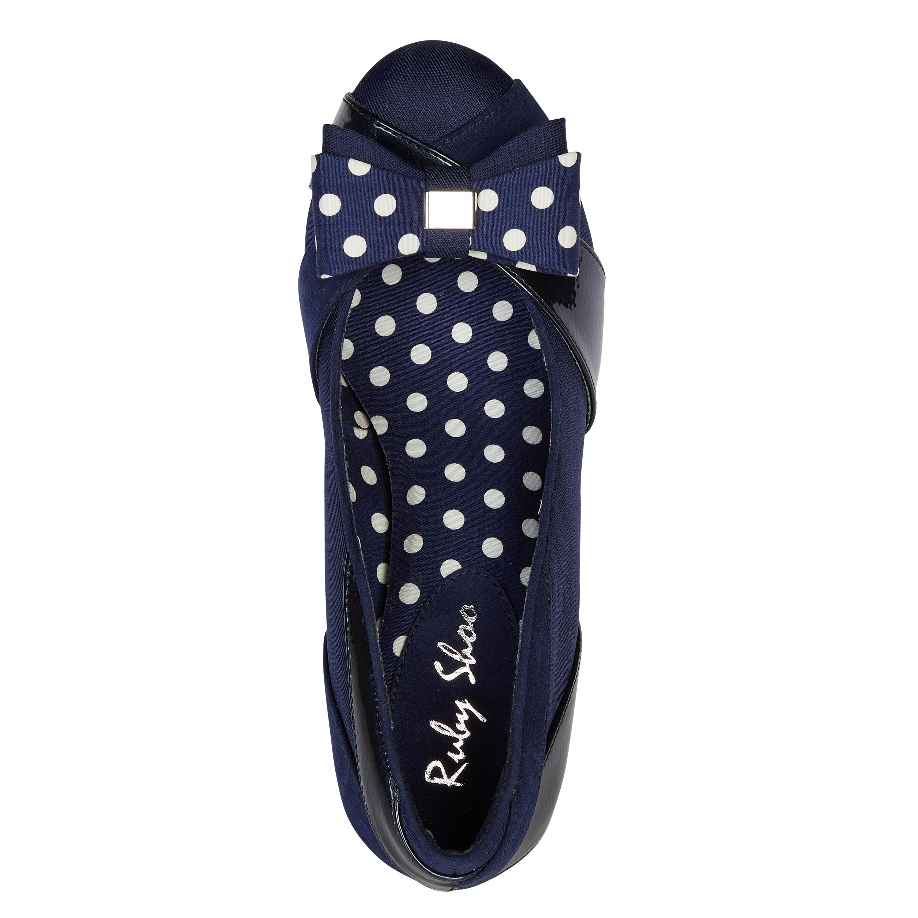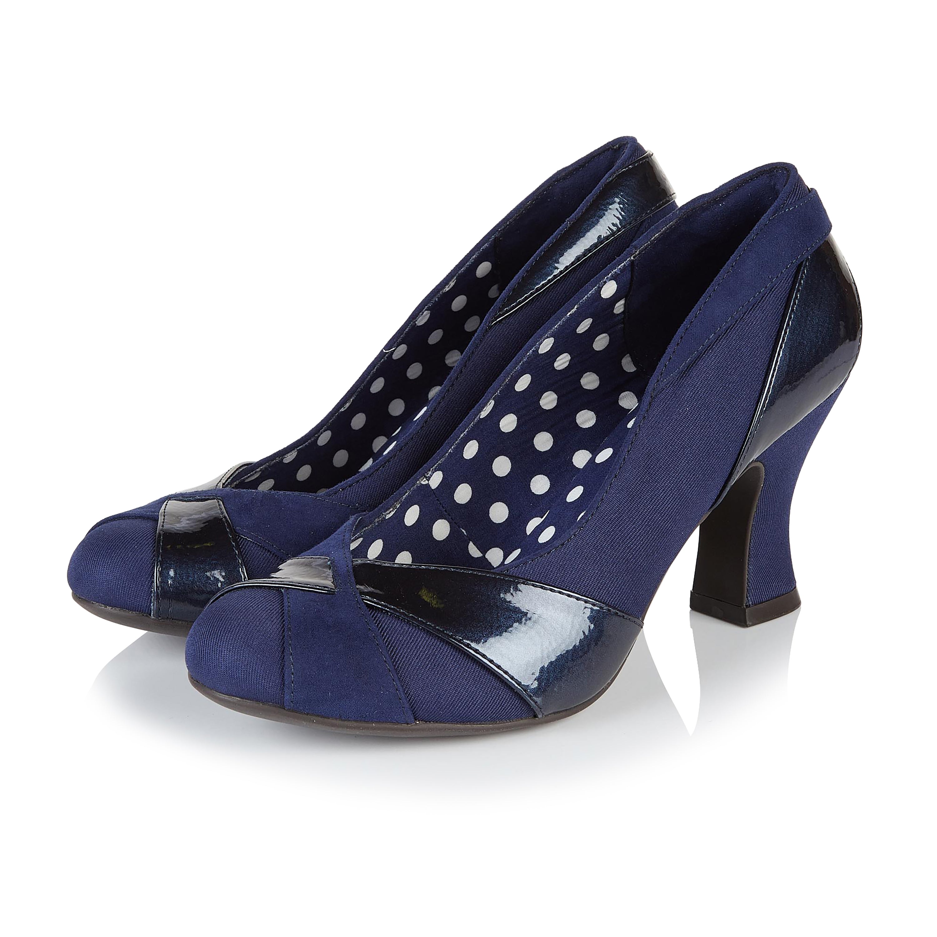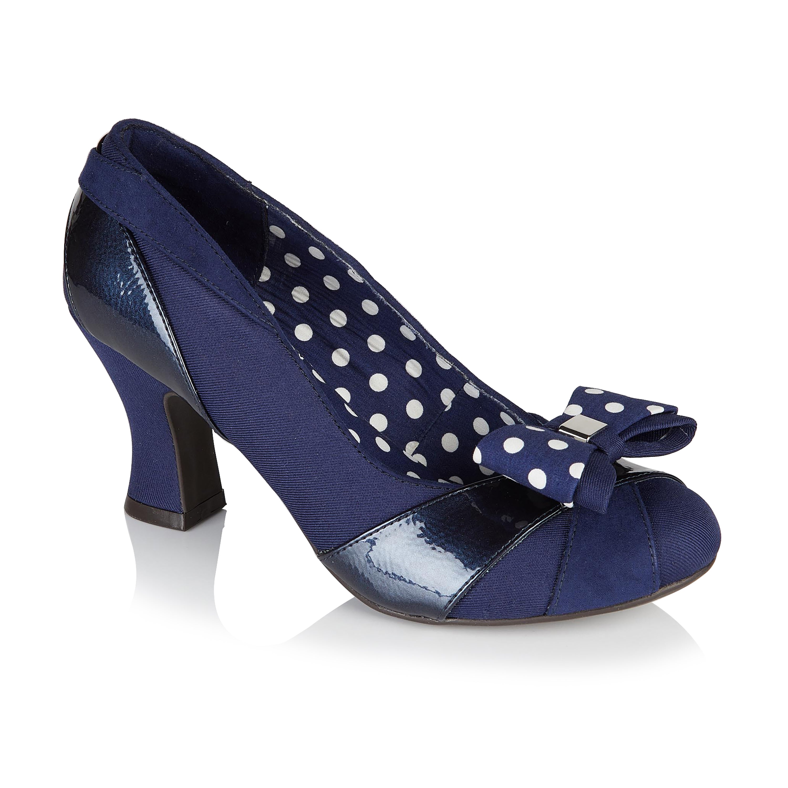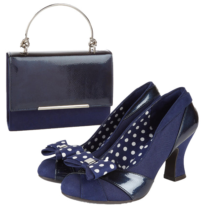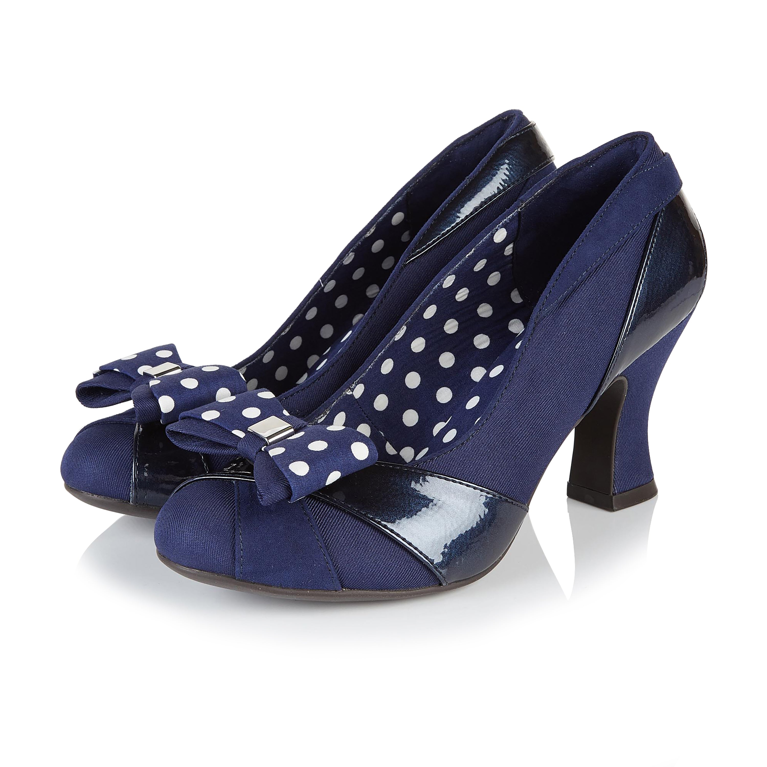 Tatum Navy Blue Mid heel Court Shoe with Removable Spotty Bow by Ruby Shoo