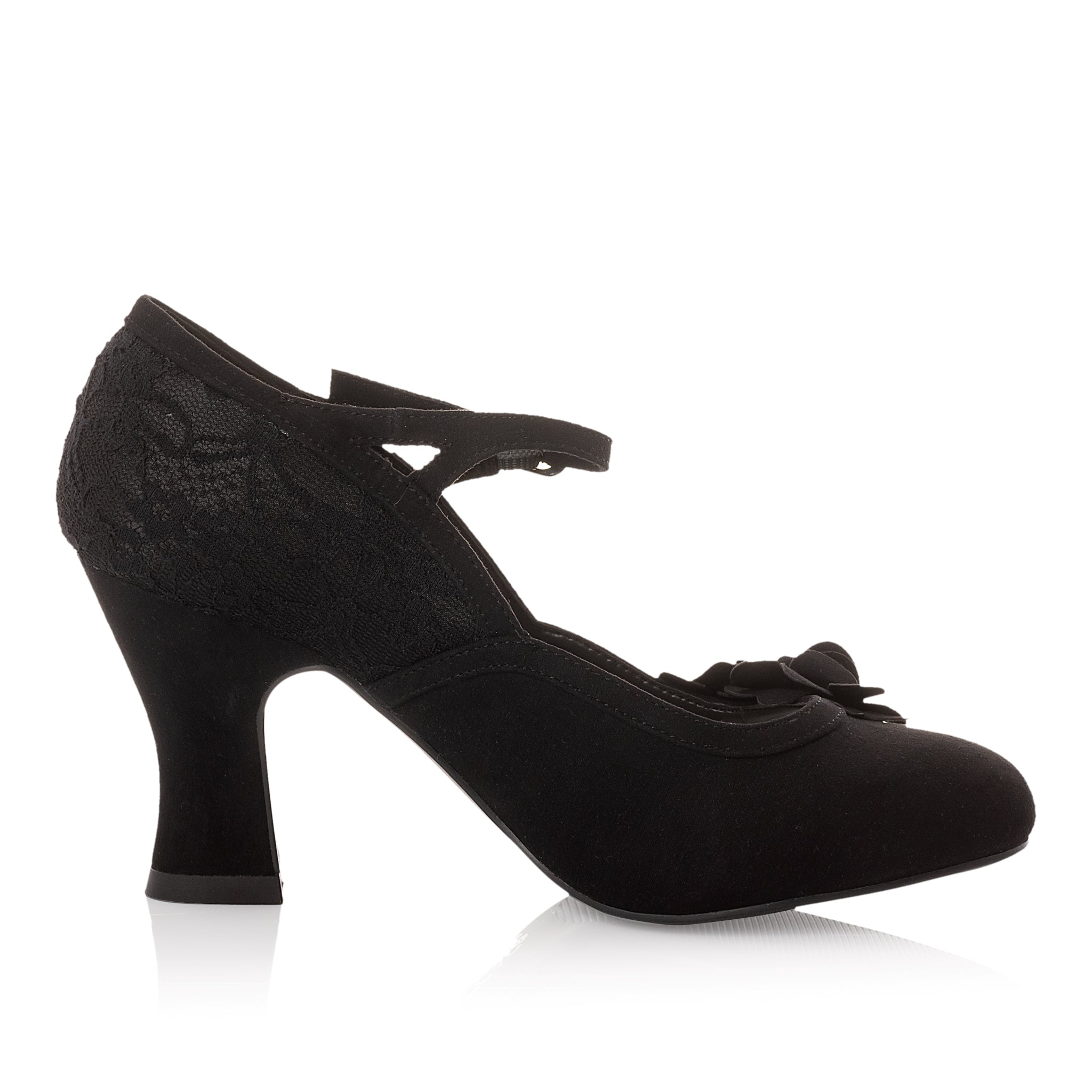 Lynn Noir Black Lace Mid Heel Bar Shoe with Indulgence Soles by Ruby Shoo