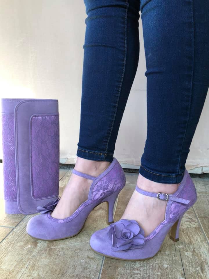 Josie Lilac by Ruby Shoo Lace Mary Jane High Heels & Matching Tirana Bag *BELLE DIVINO EXCLUSIVE*