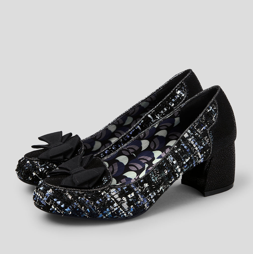 Thalia Black Tweed Low Heel Court Shoes by Ruby Shoo