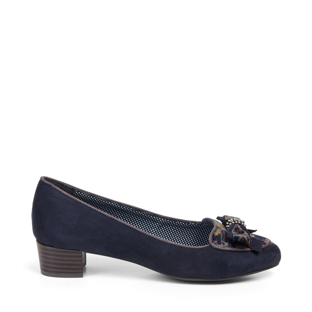We know you love Ruby Shoo's attention to detail, and new VICTORIA delivers with a low heel and style that is suitable for both work and play. Classic kit with bow front makes a uniquely wearable style. Ruby Shoo VICTORIA Navy matches perfectly to bag style ACAPULCO for a stylish set for any occasion. Upper: Textile Lining: Synthetic/textile Sole: Man made materials Heel height: 30mm. New mini saddle bag Acapulco, with its detachable, adjustable shoulder strap and fixed handle, features a zip closure with magnetic flap for extra security, and a zipped inner pocket. In rich faux suede and striking flocked jacquard. Outer: Textile Lining: Textile Width: 190mm Height:180 mm Depth: 70mm Adjustable Strap length: 690mm - 1240mm Adjustable Strap Drop: 300mm - 590mm