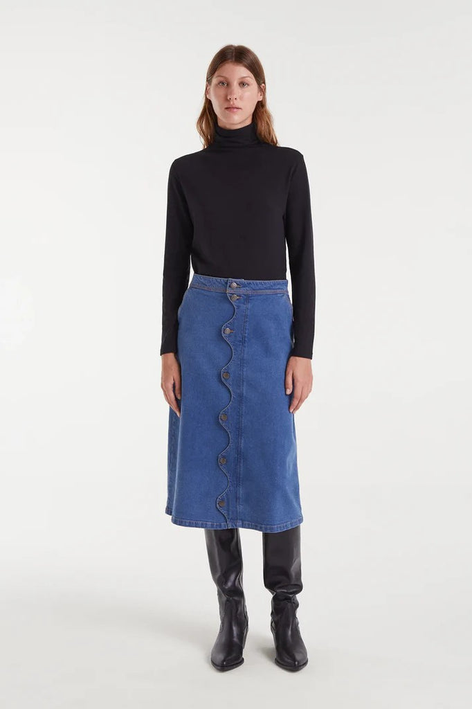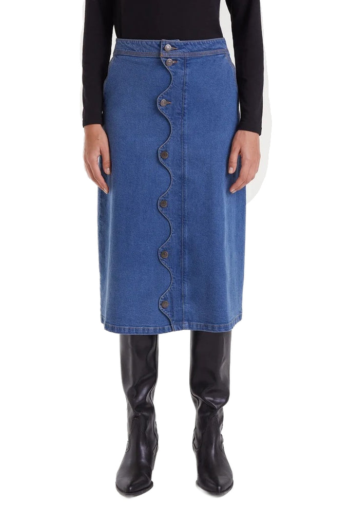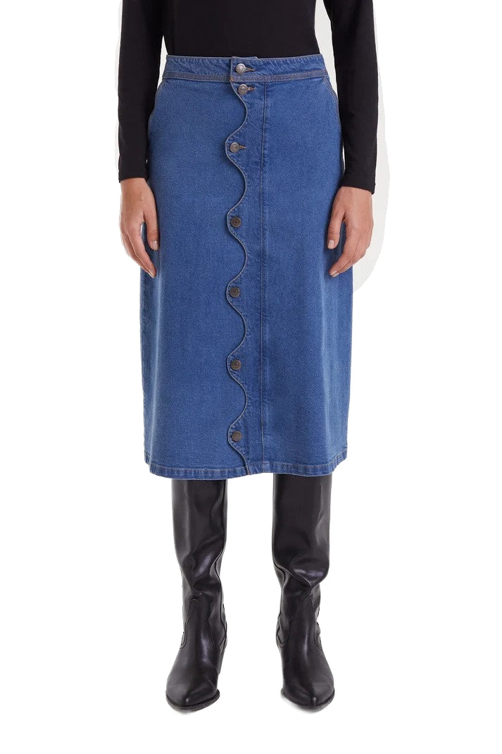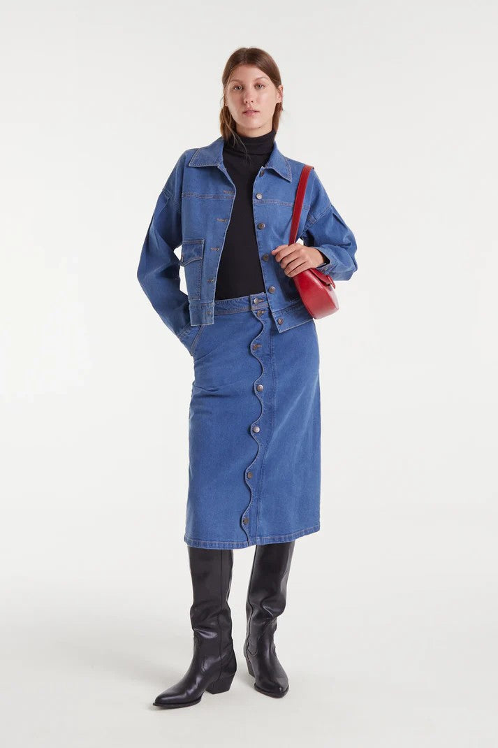Compania Fantastica Blue denim midi skirt - UK 6 (EU 34 / EU XXS) / Blue is backordered and will ship as soon as it is back in stock.
