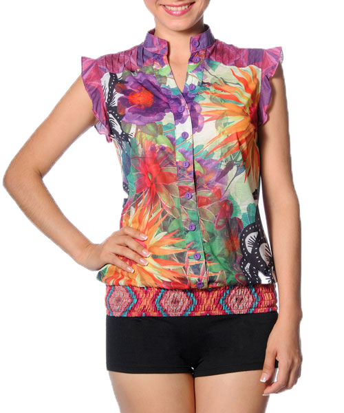Smash Barcelona S-XXL UK 10-18 RRP ?69 Amora Blouse Tropical Floral Sheer