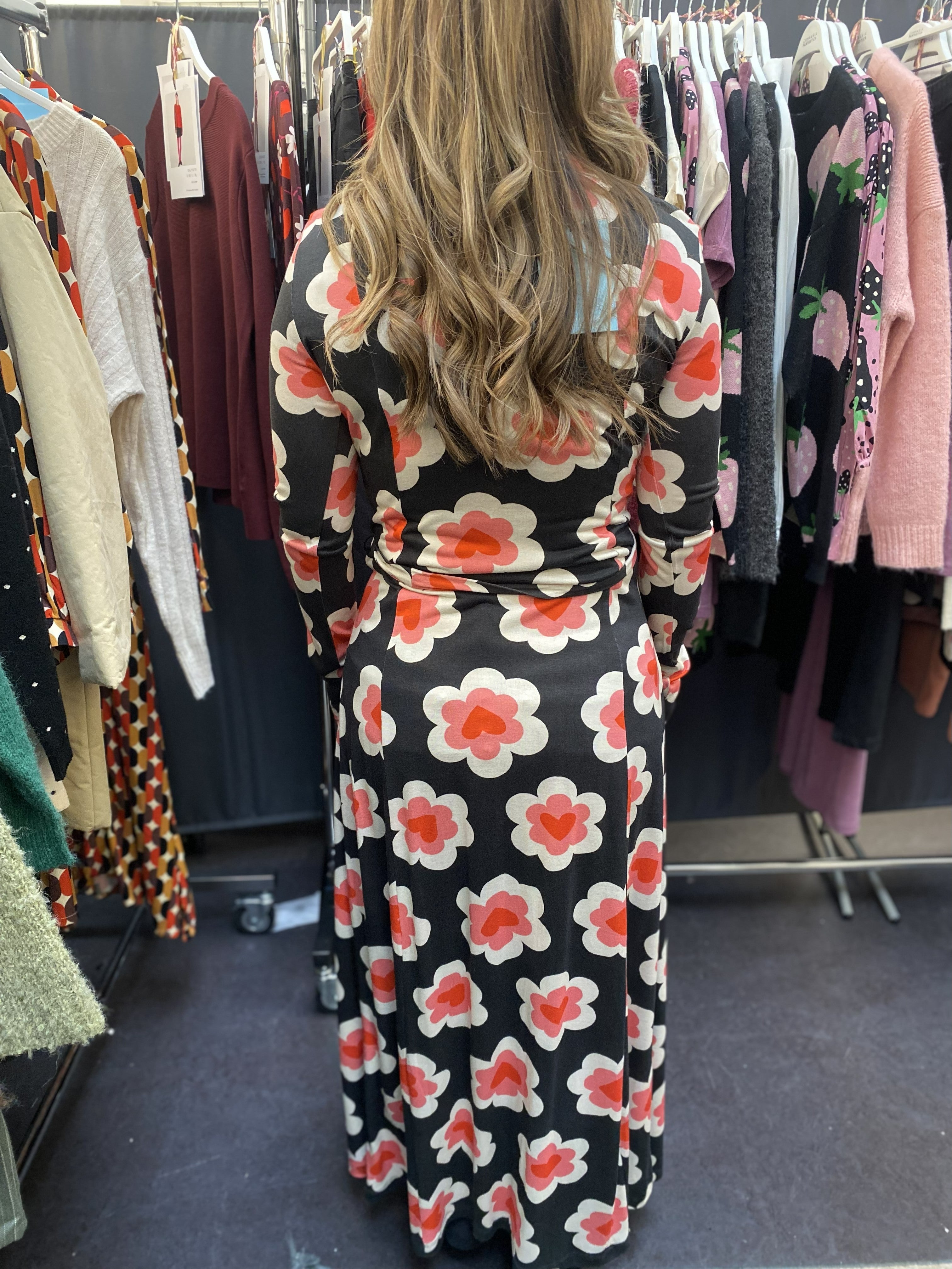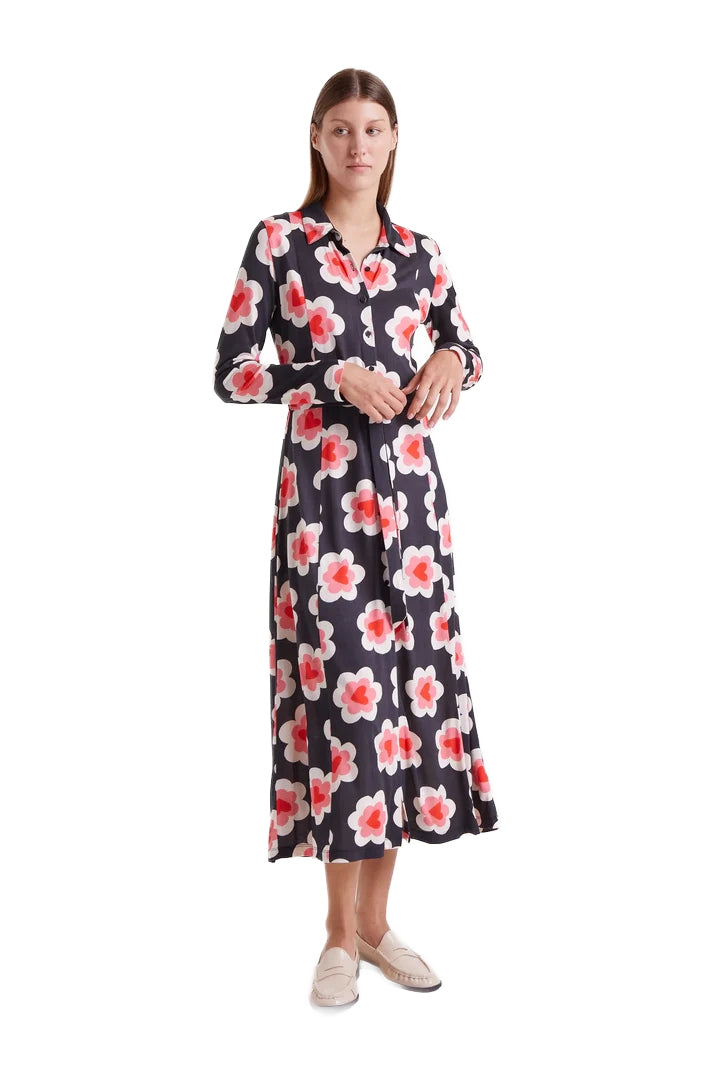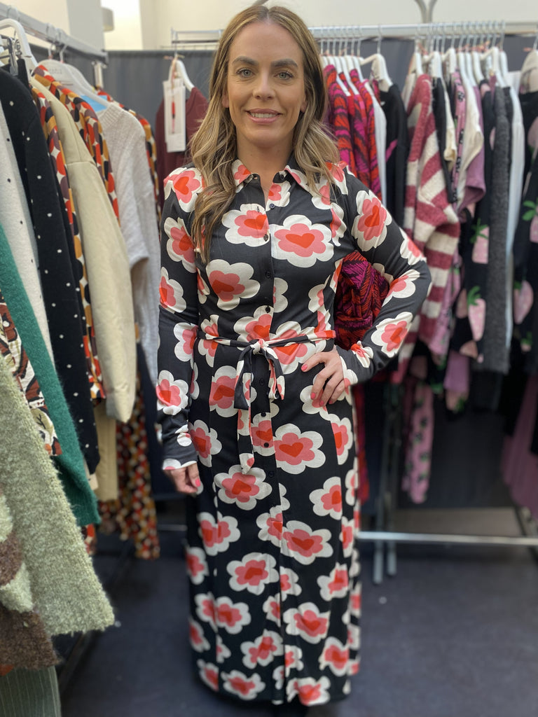 Compania Fantastica Black & Pink Sweethear Print Midi Shirt Dress
