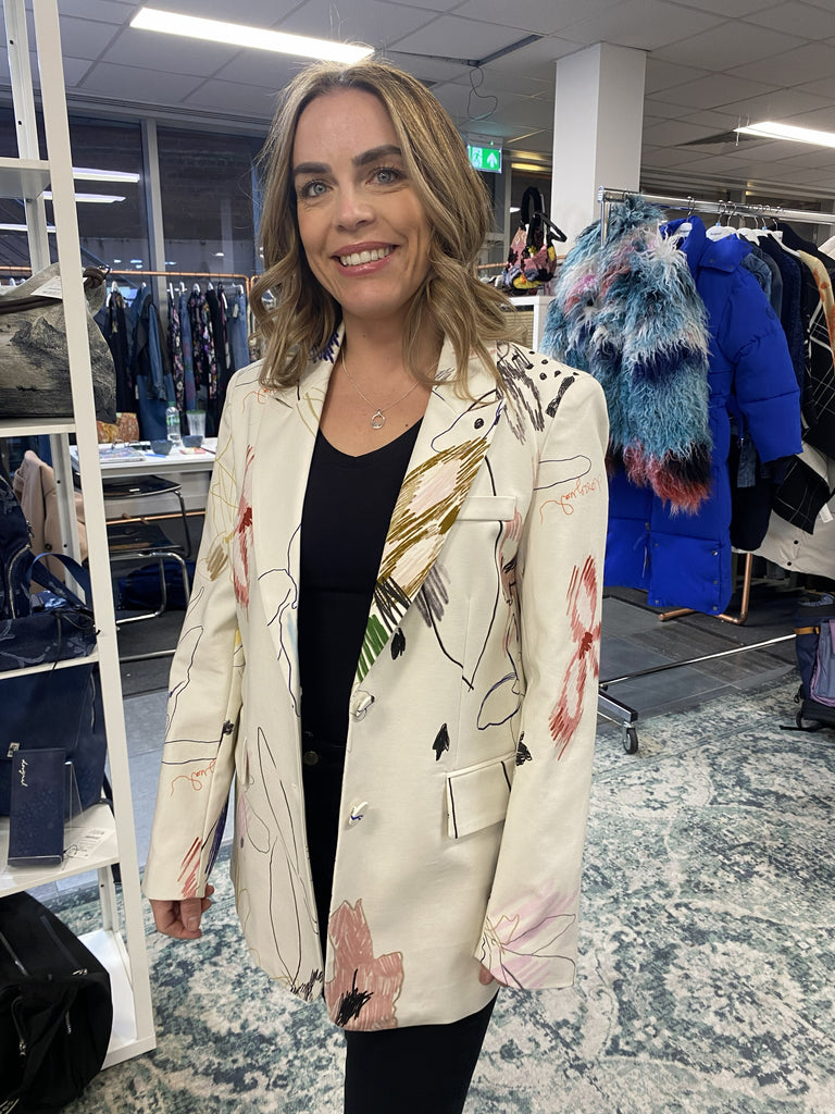 Regular fit blazer with front pockets and Arty print with colorful strokes.