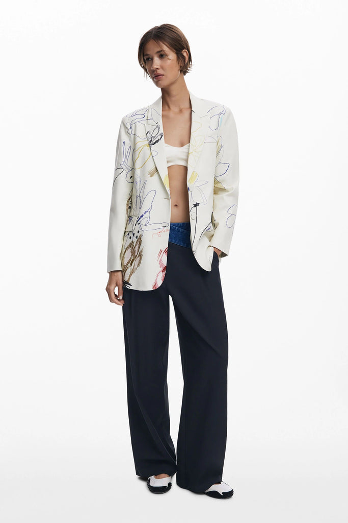 Desigual Arty Print White Regular Fit Blazer 25WWEW21