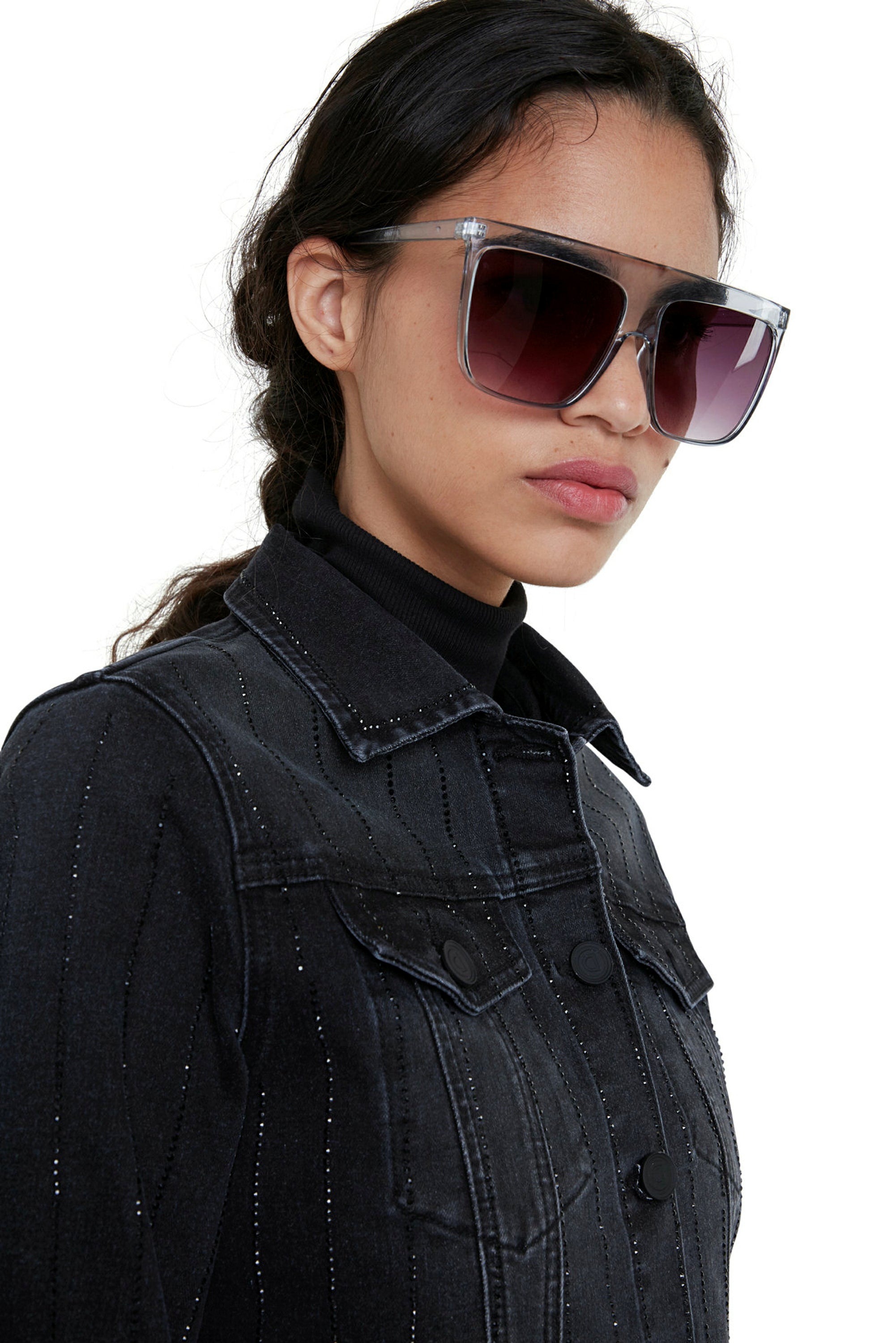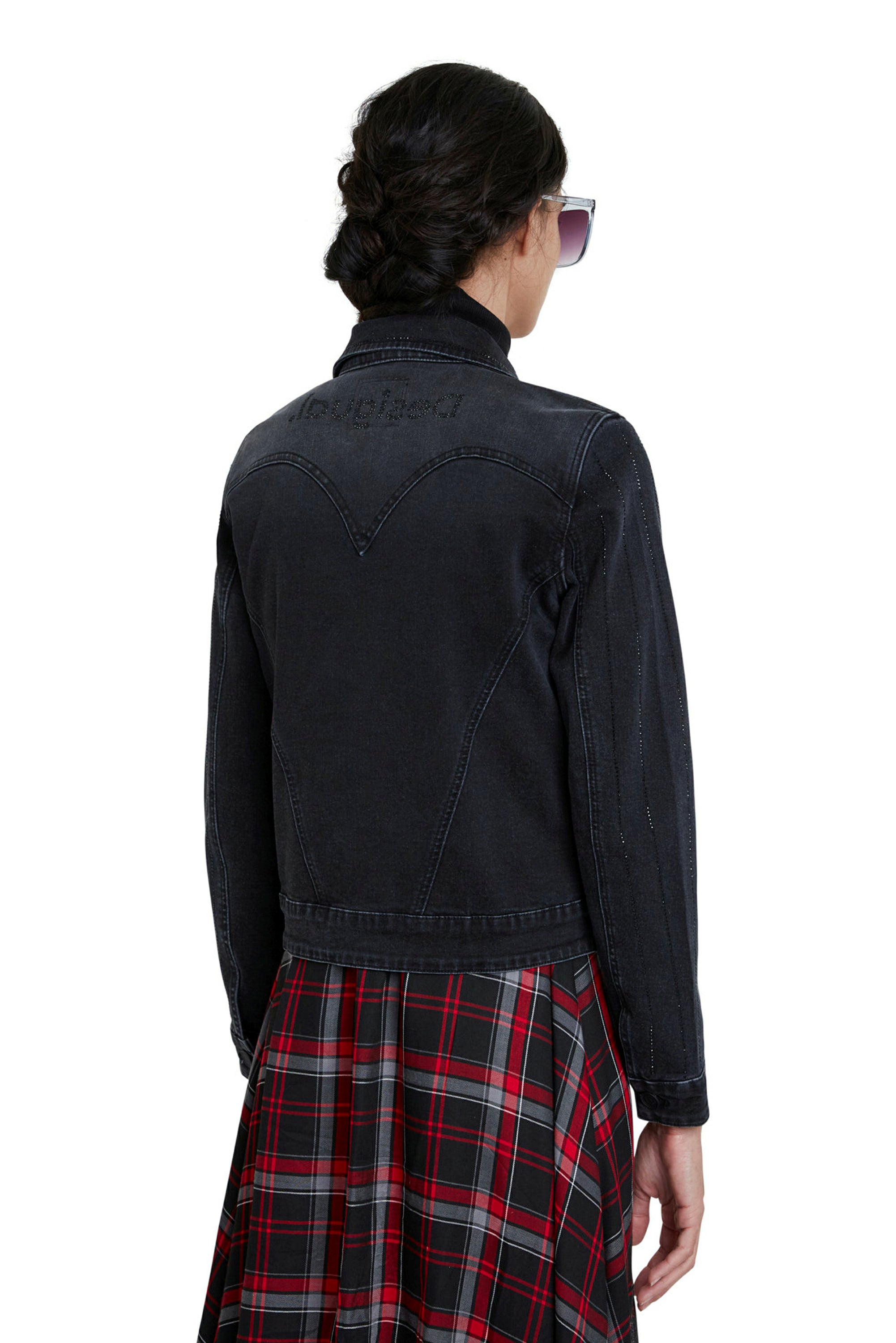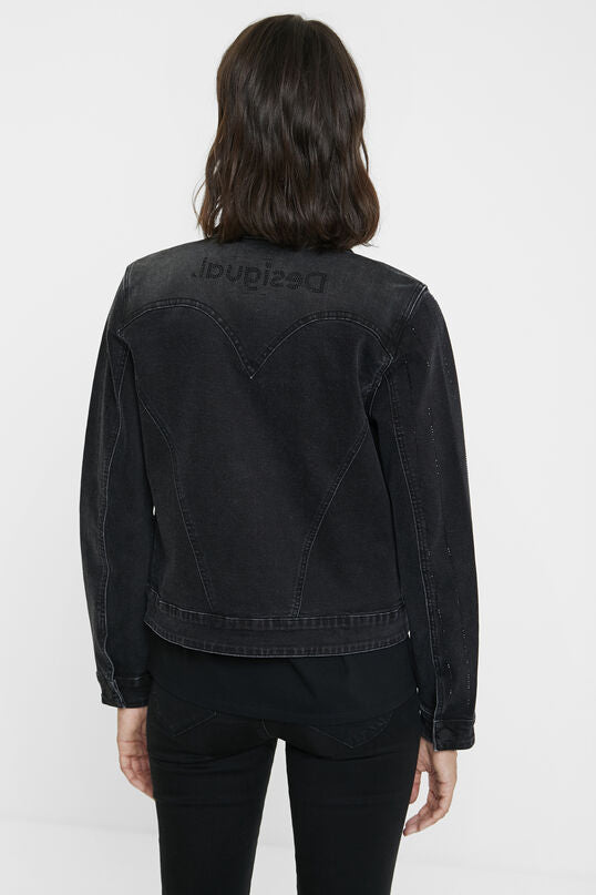 Black Blinder Denim Jacket with Vertical Sparkly Rhinestones Desigual Style 20WWED21