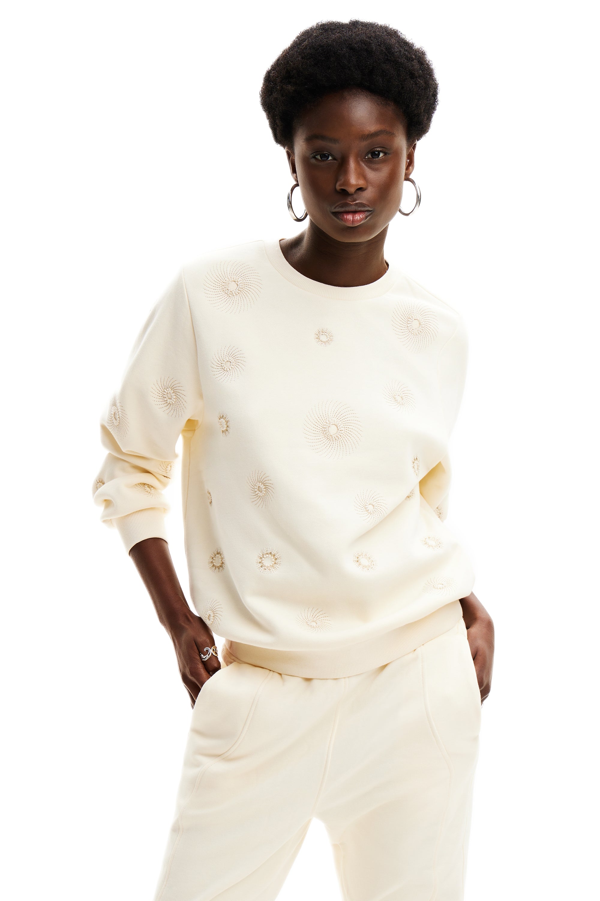 Desigual Joyta Sweater with Metallic Circle Embroidery 24SWSK07