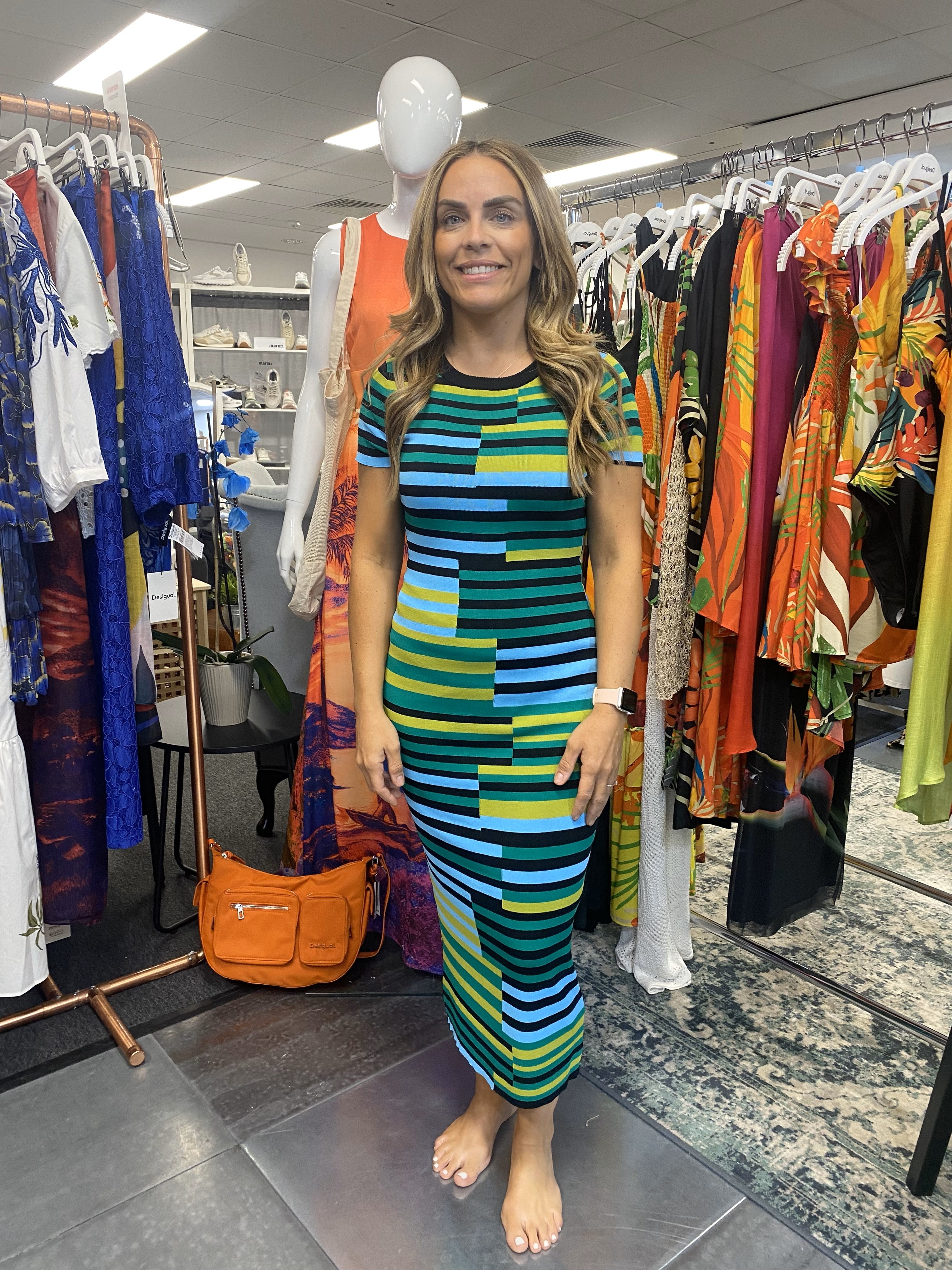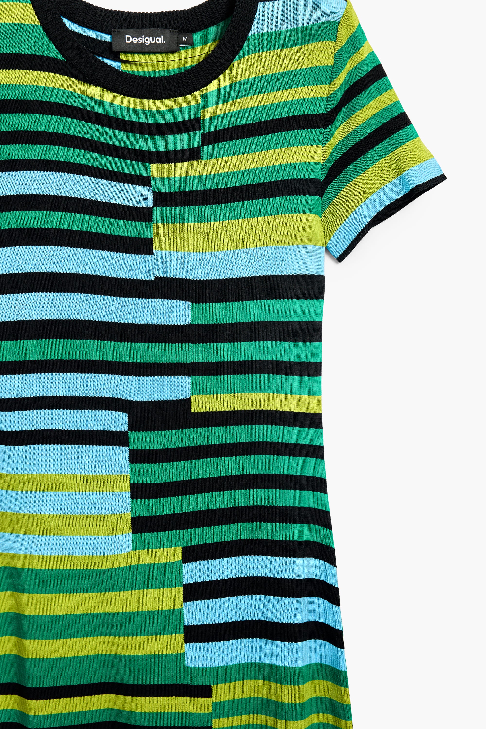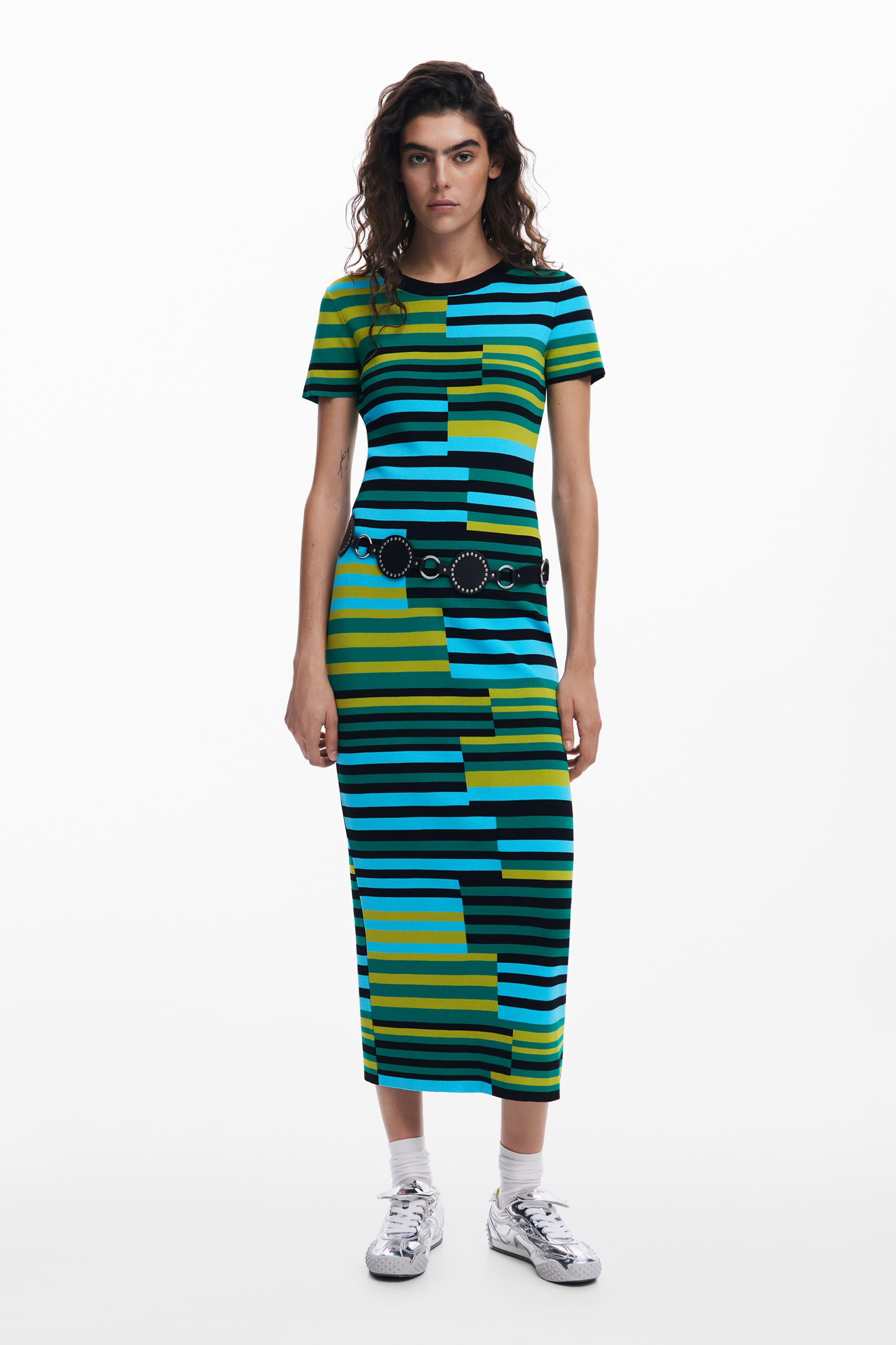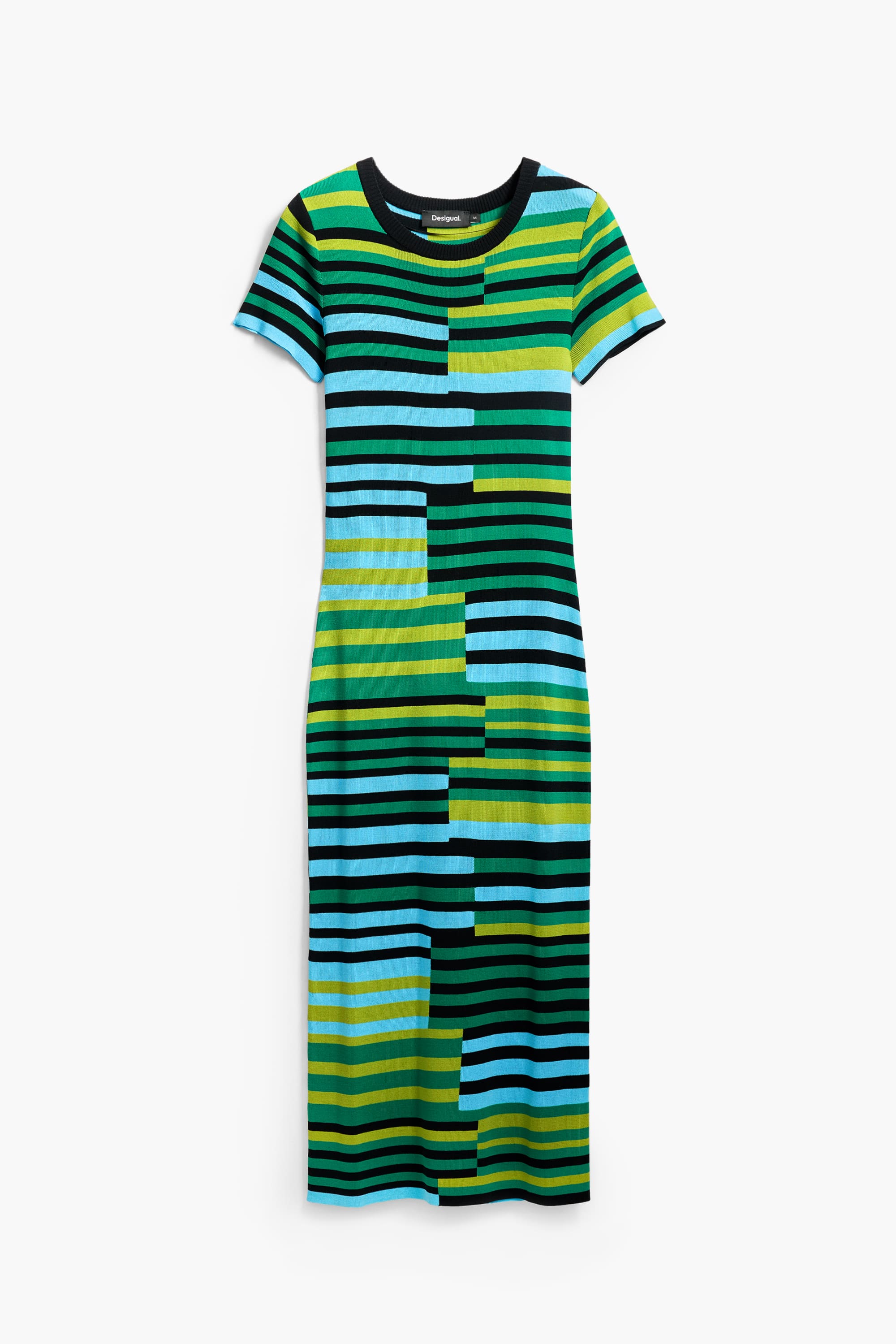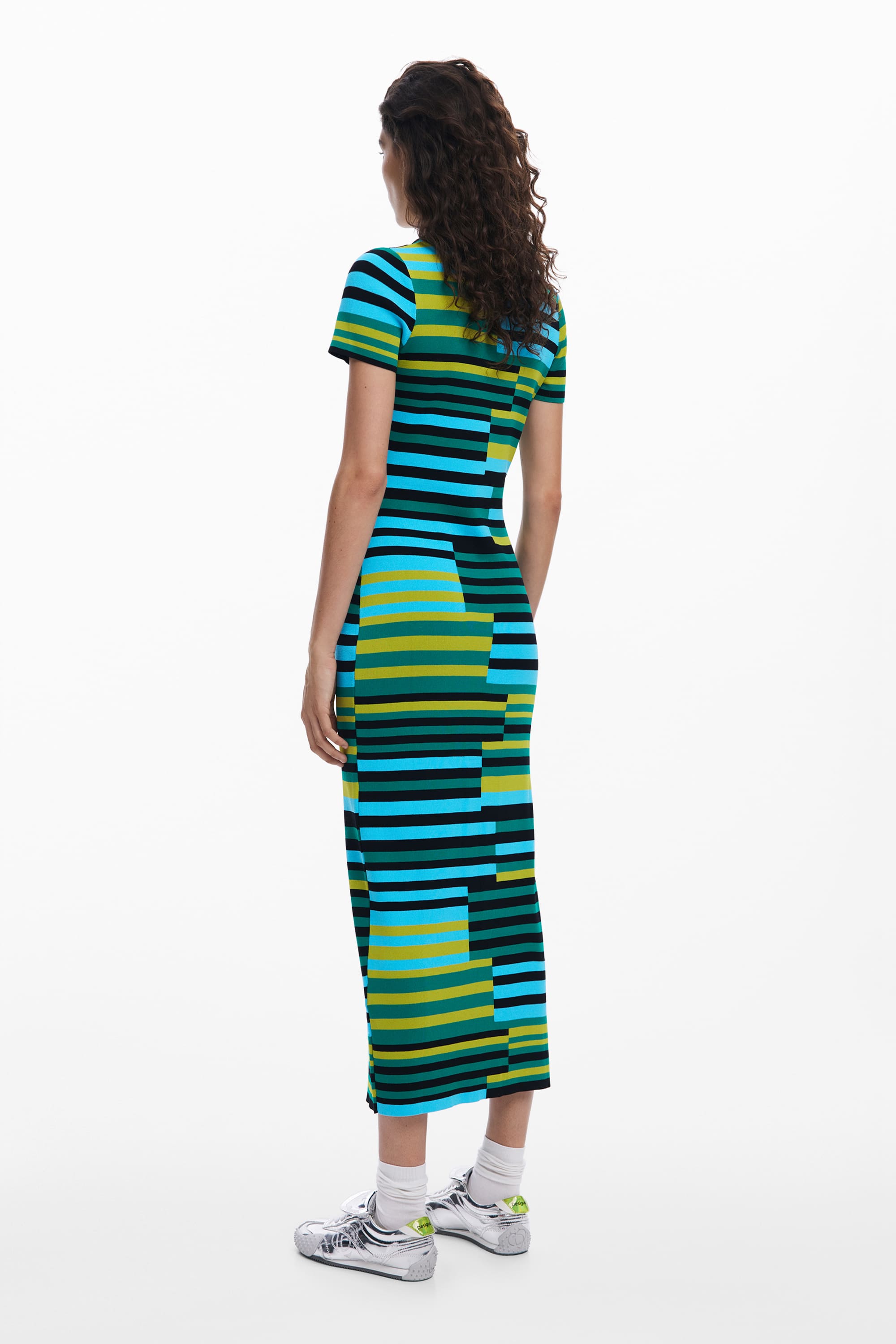Desigual Uruguay Long Green Striped Knit Dress 25SWVF04
