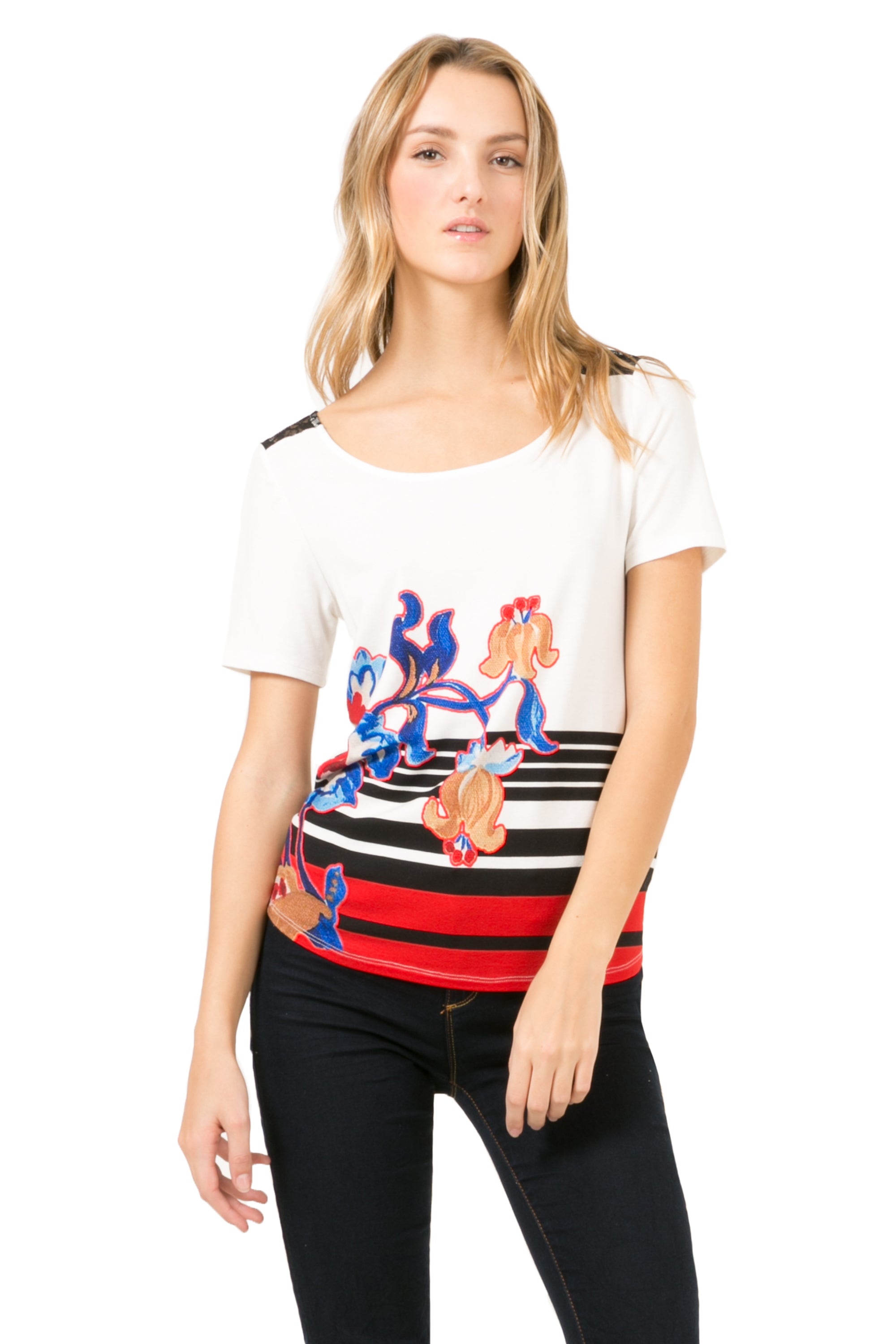 Enero Stripe Oriental Flowers T-Shirt Desigual Style 61T25Q2 - UK 14 (42 / L / 32) / White is backordered and will ship as soon as it is back in stock.