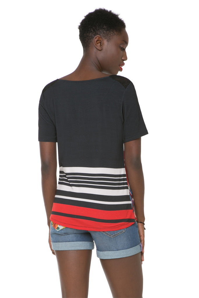 Enero Stripe Oriental Flowers T-Shirt Desigual Style 61T25Q2 - UK 14 (42 / L / 32) / White is backordered and will ship as soon as it is back in stock.