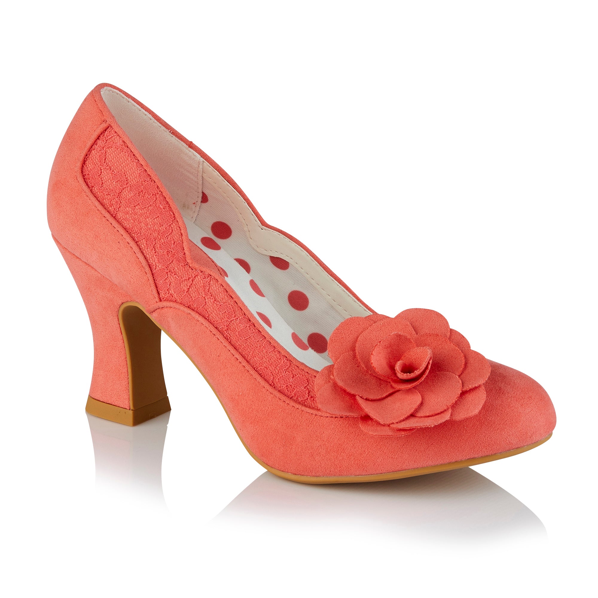 Chrissie Coral Mid Heel Lace Court Shoes by Ruby Shoo