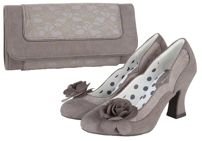 Chrissie Grey Mid Heel Lace Court Shoes by Ruby Shoo
