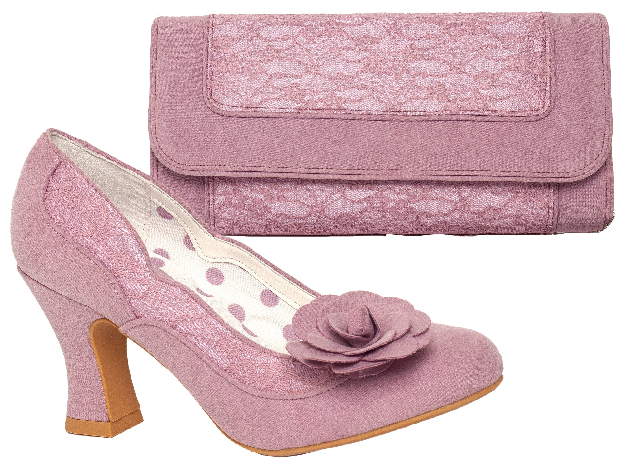 Chrissie Mauve Pink Mid Heel Lace Court Shoe by Ruby Shoo *BELLE DIVINO EXCLUSIVE*