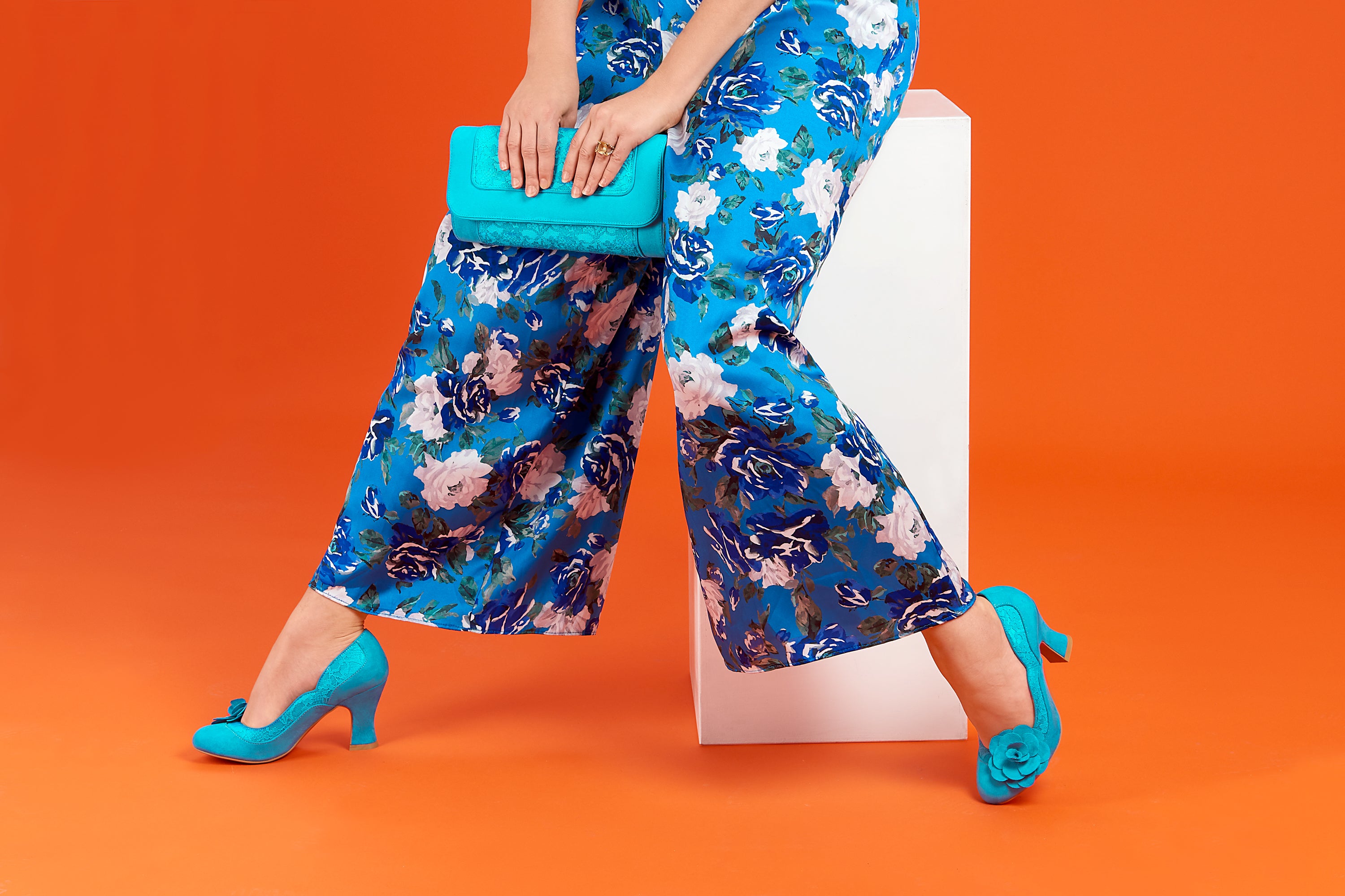 A brand new Ruby Shoo design in a kalidescope of colours, some exclusive to Belle Divino, and featuring the brand new indulgence insole for supreme comfort. This matching set of Chrissie shoe and Tirana bag will complete so many outfits, they work perfectly as special occasion shoes for a wedding, bridesmaids, parties etc, but look just as fabulous with jeans. Flattering scalloped shape is emphasised by delicate lace overlays on satin and matching floral corsage to give the Ruby Shoo wow! Co-ordinating polka dot linings make the inside as special as the outside. Upper: textile/other Lining: textile Sock: textile Sole: other. Vegan friendly. Heel height 80mm Indulgence Collection Features ~Super-soft interior cushioning every step with an extra deep foam insock ~All day comfort contoured insock ~New carefully designed shapes leaving extra room for toes ~High resistance memory foam ~Stability insole ~Arch support with added durability ~Reduced pressure points ~Flexible soles that move with your feet