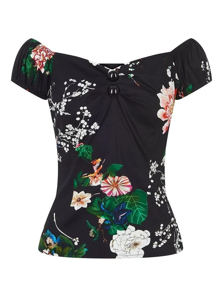 Collectif Vintage Women's 1950's Blossom Print Dolores Doll Top